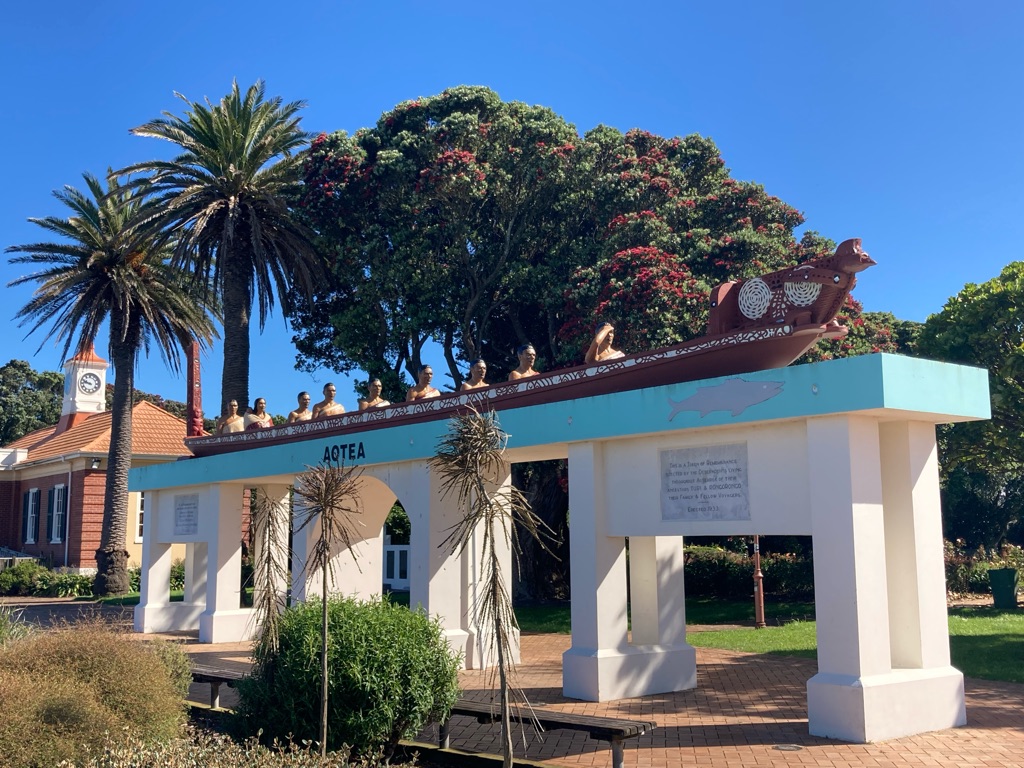 There was a sign to the Abel Tasman monument. It didn’t seem too far off the road, so I left the bike and jogged up 100 or so steps to the monument, which offered some nice views.