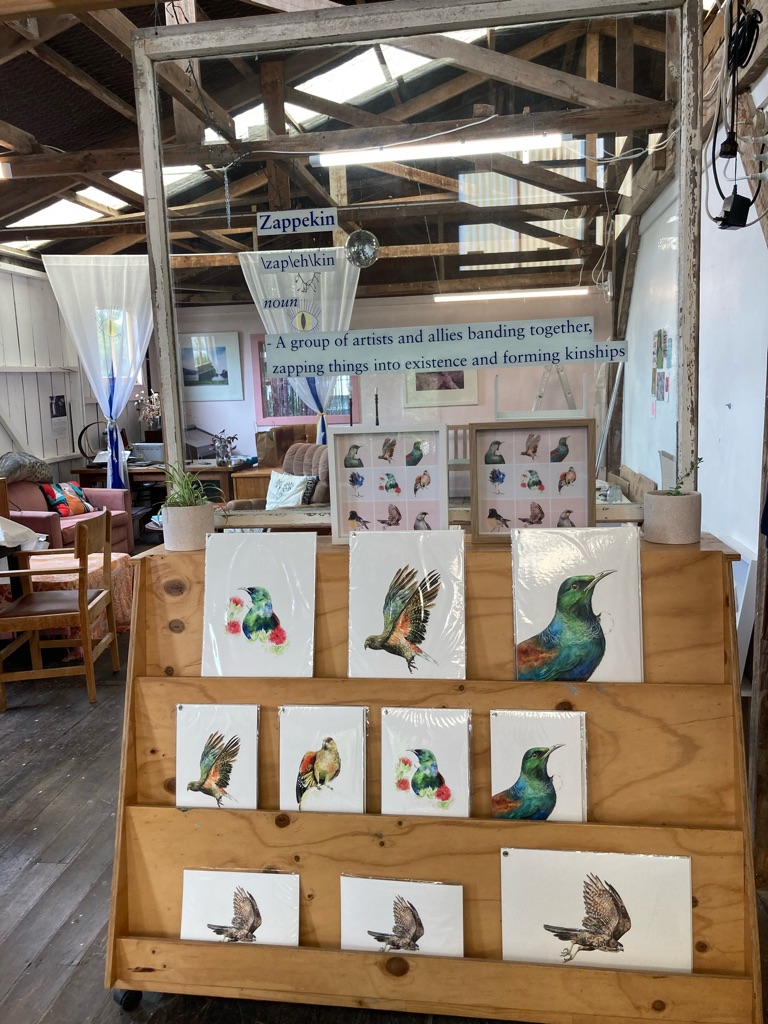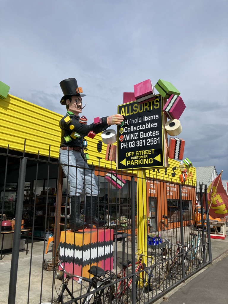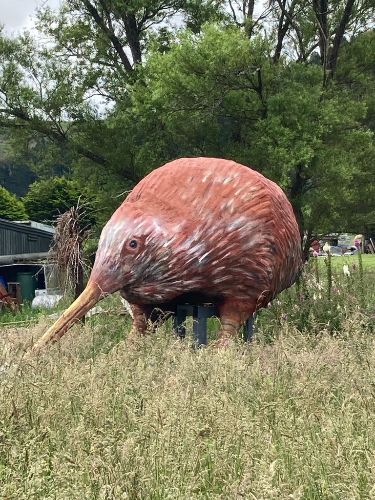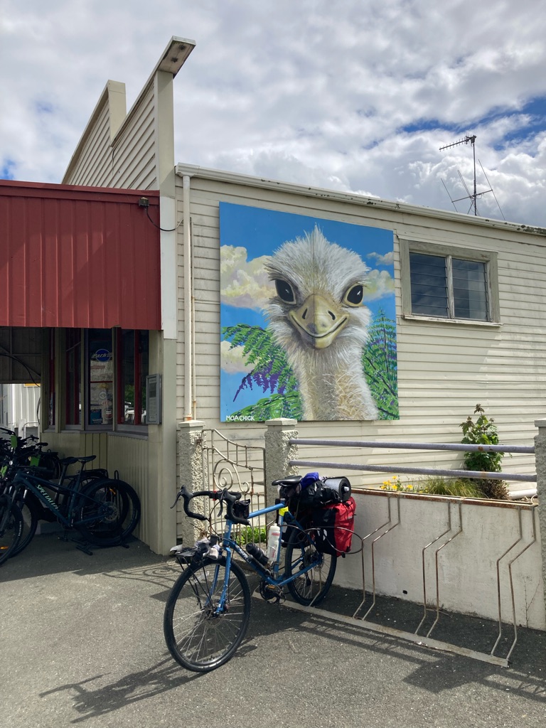I’m pleased to discover I am the beneficiary of a tail wind, and ride comfortably at 15mph. There are coastal flats to the left of me, and lots of birds. I’ll probably be in Nelson by 1730 or 1800. I hatch a plan to stay in a YHA hostel which I’d noticed in my research before. It’s very close to the bus station I’ll be using tomorrow morning, and I also feel like I’ve earned a night in a proper bed today. There are signs to a few galleries, and since I have plenty of time, I head into “Zappekin” and get a couple of photos.
