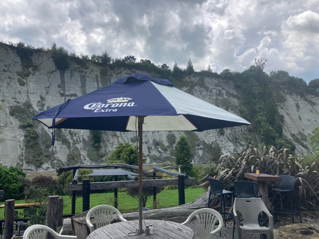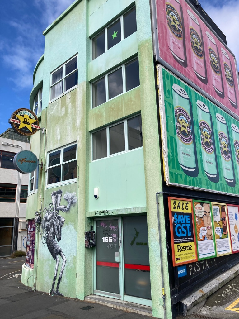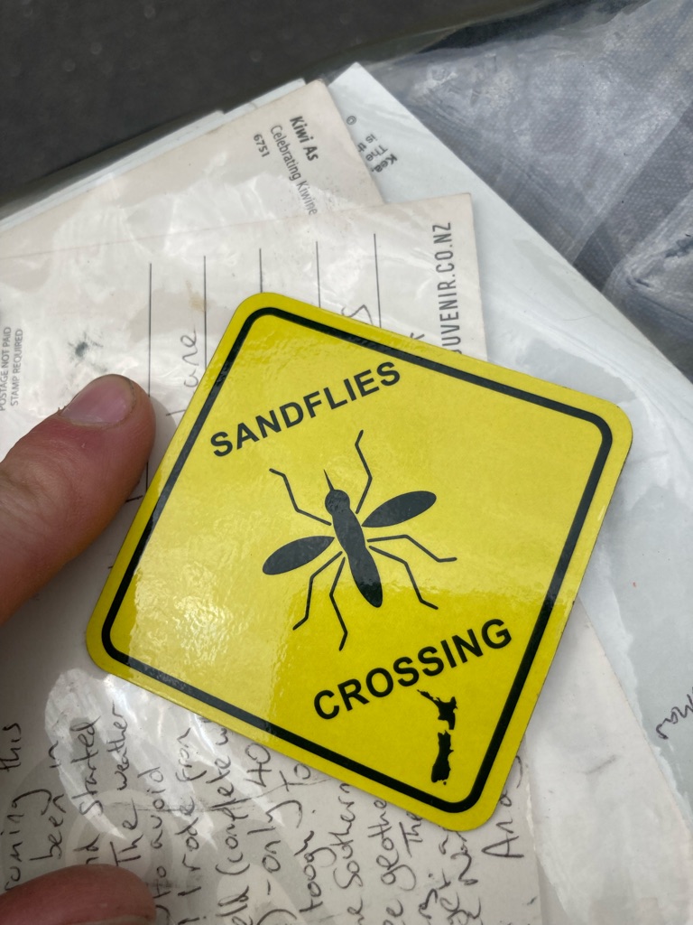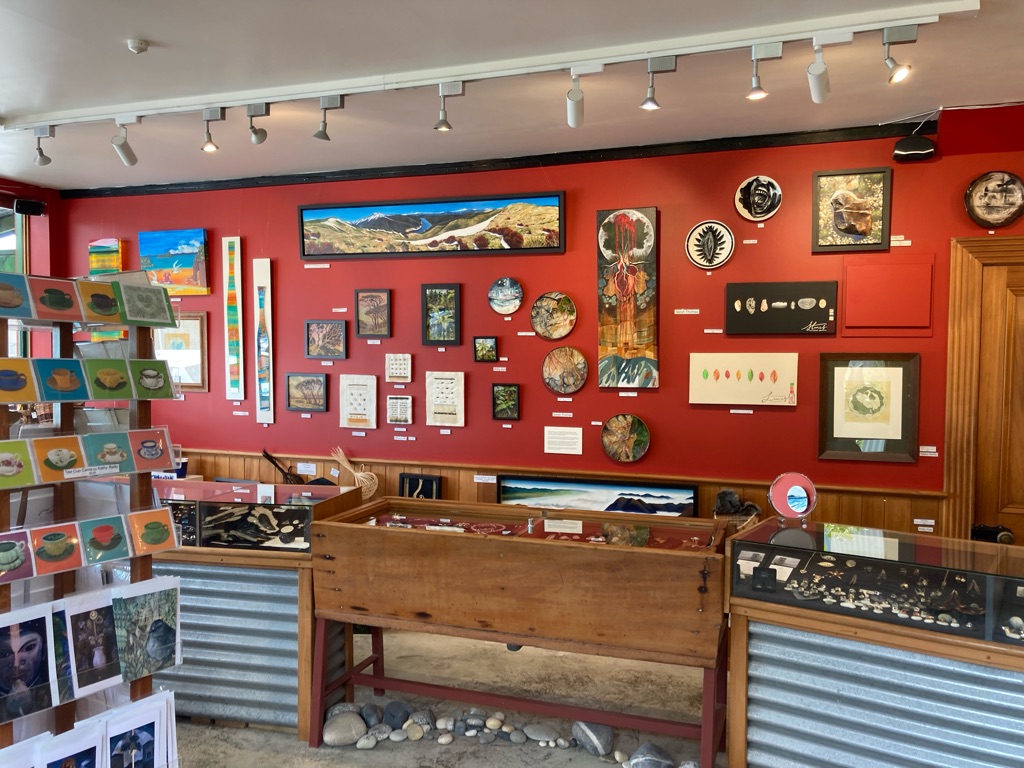 I’m pleased to discover I am the beneficiary of a tail wind, and ride comfortably at 15mph. There are coastal flats to the left of me, and lots of birds. I’ll probably be in Nelson by 1730 or 1800. I hatch a plan to stay in a YHA hostel which I’d noticed in my research before. It’s very close to the bus station I’ll be using tomorrow morning, and I also feel like I’ve earned a night in a proper bed today. There are signs to a few galleries, and since I have plenty of time, I head into “Zappekin” and get a couple of photos.