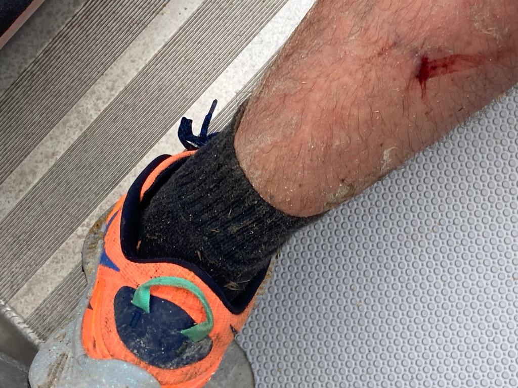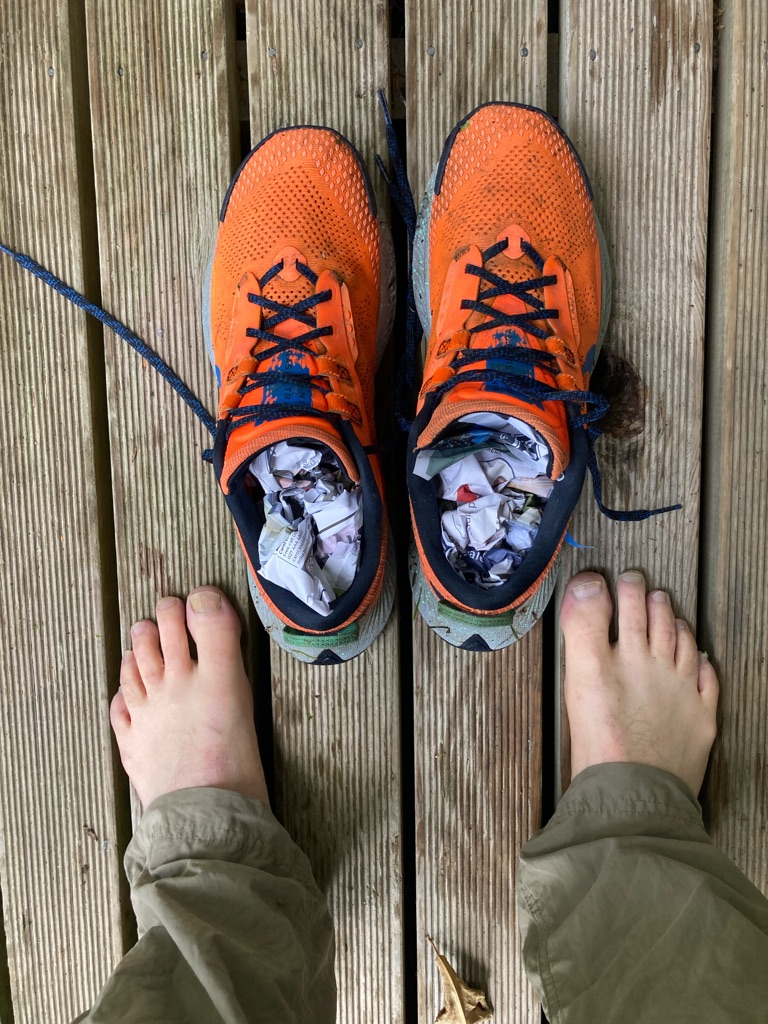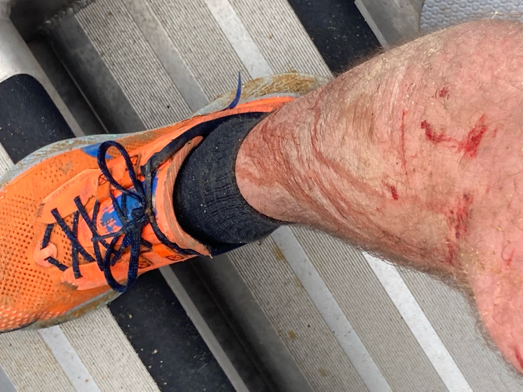 I was that \240lucky I’d chosen trail running shoes for the trip. They have more grip for running through mud than normal trainers, and tougher material to protect from abrasions. They hadn’t suited me for running races at home, but came into their own here, despite their garish orange colour!