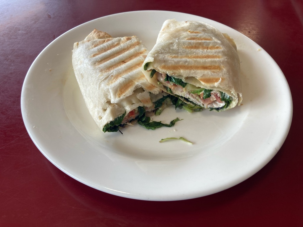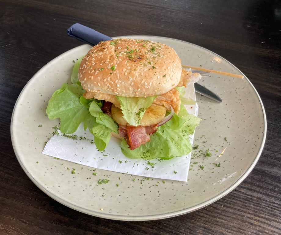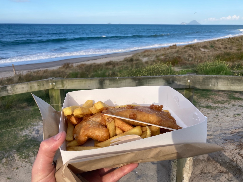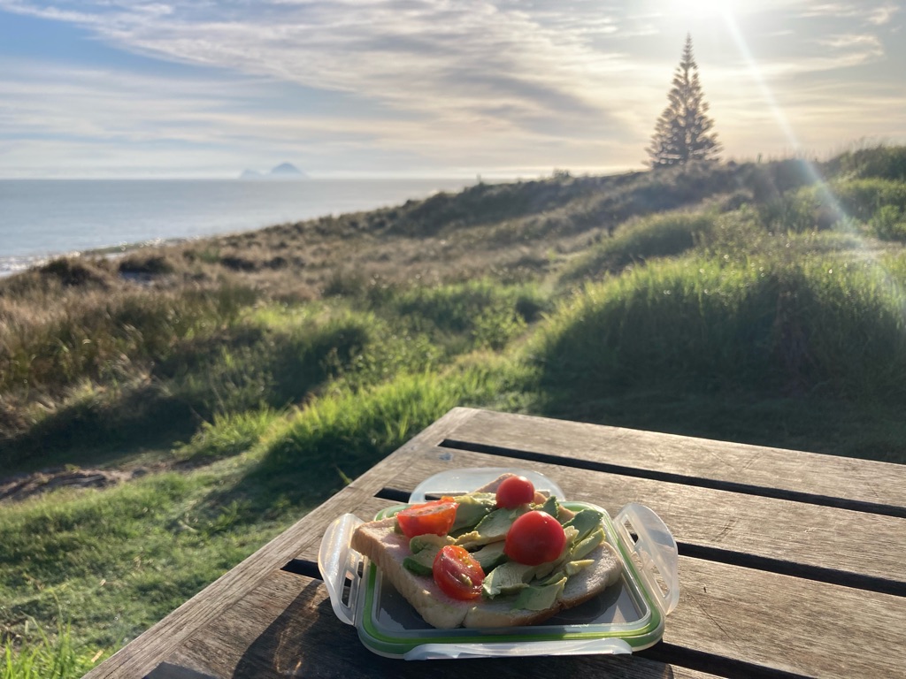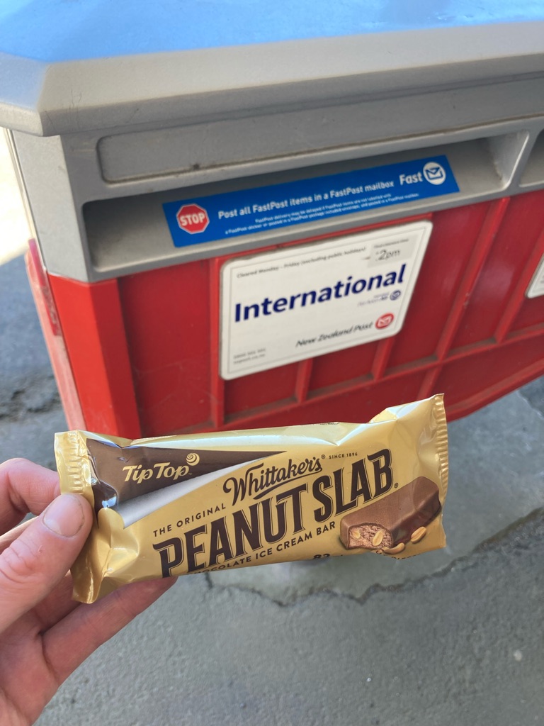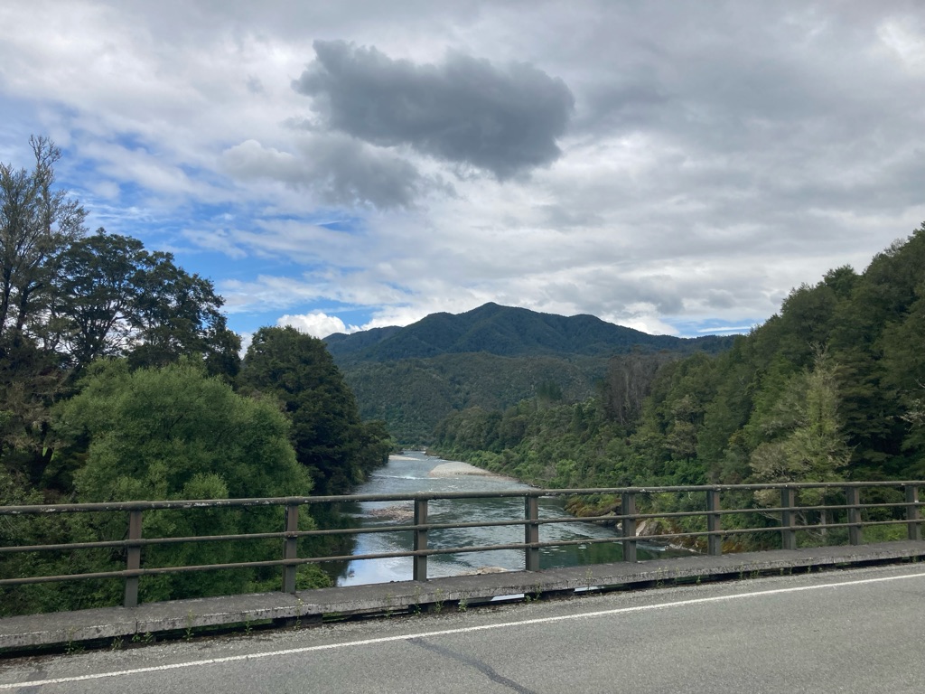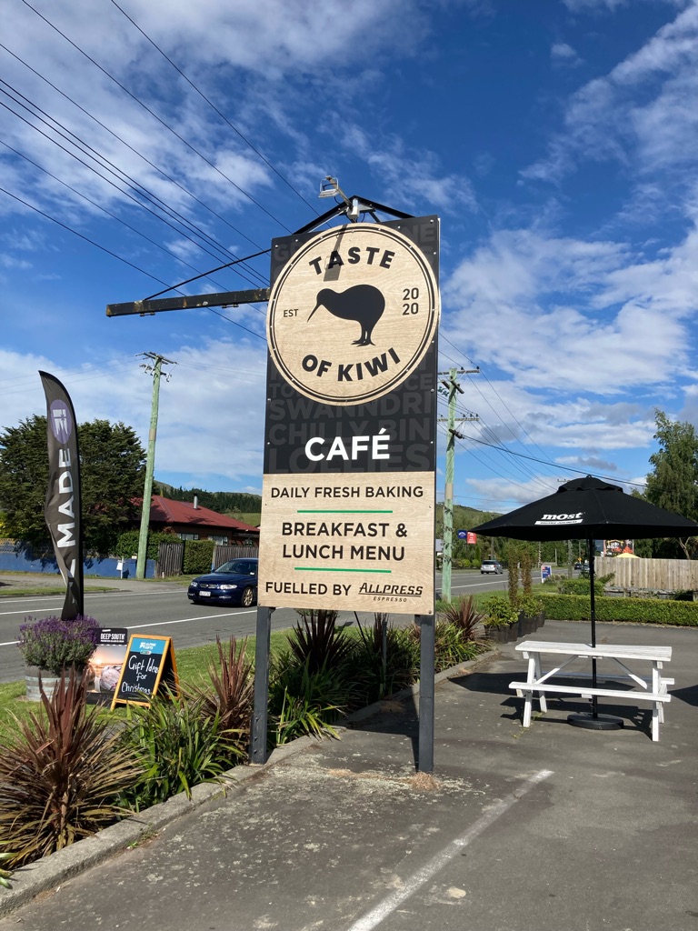 After about 40 minutes, I arrived in Motueka. It was only 7 or 8 miles from Kaiteriteri, and was very flat. It was probably about 1320 by that time. Motueka was the first place I’d been in that was very busy with cars - it took forever to cross the road. The first two cafes I looked at did’t seem to have bathrooms. In the process of looking, I noticed an international postbox and sent the cards I had written at the campsite last night. No point in wasting the opportunity!