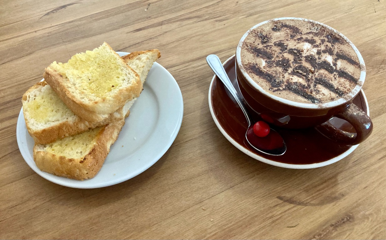 There again. What else was I going to do? Sit on then beach? I needed to get cleaned up too - especially those cuts and grazes. Some coffee shop didn’t know what a treat it was about to be in for!