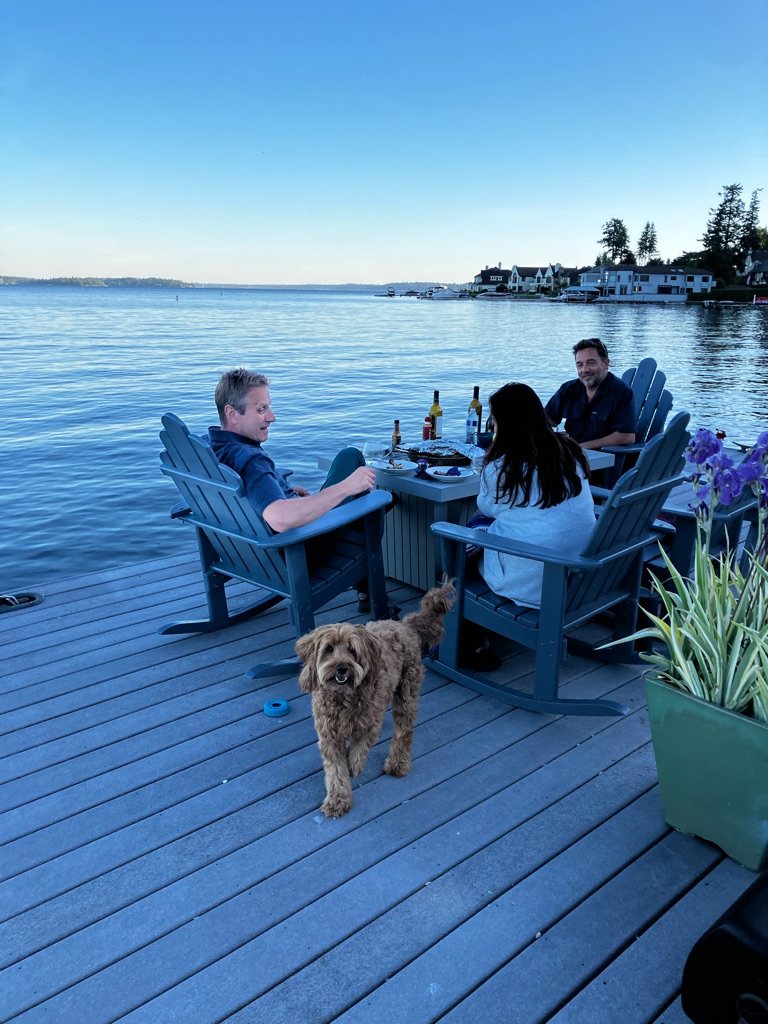 We return to be greeted by Misty Lane fury friends. \240Jilly gets to hang a little with Tux and I throw the ball to Shady. \240Who is quite happy to have a willing ball thrower. \240The rain has stopped. \240The sun is out and the ground is drying.