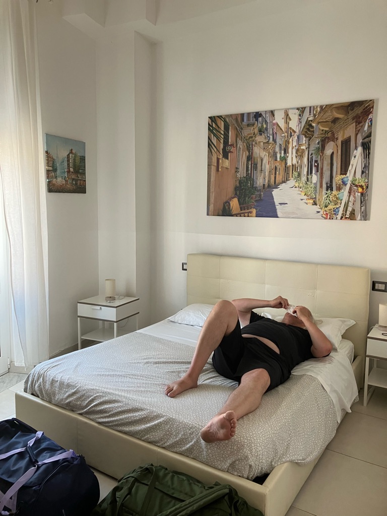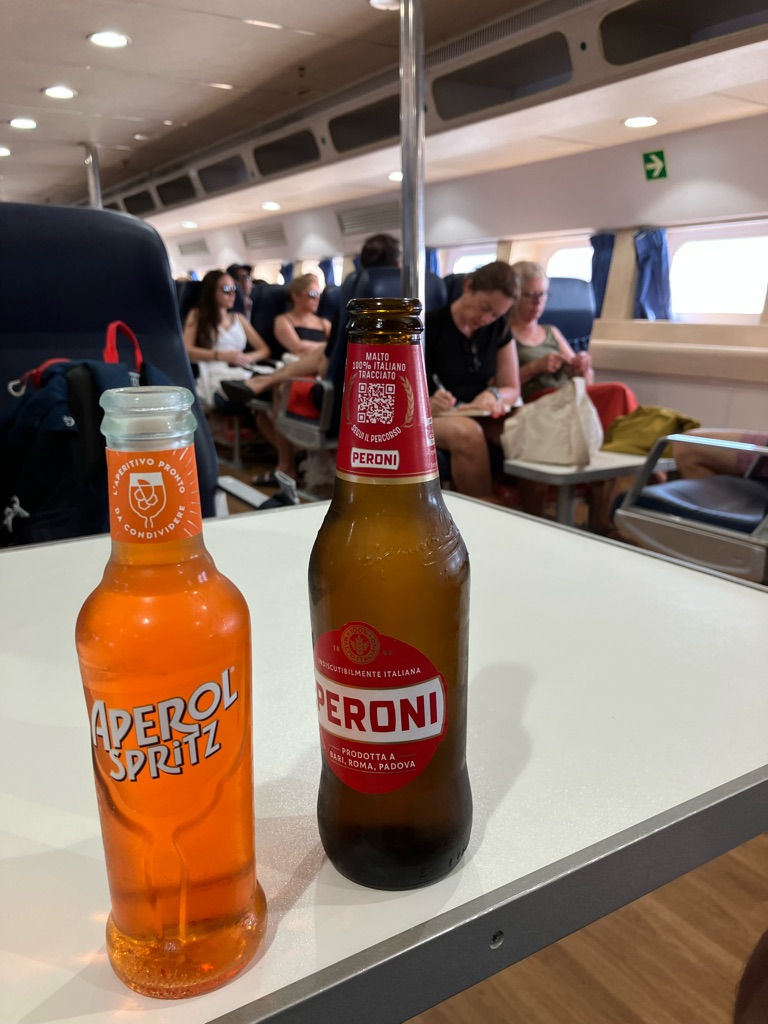 Kamat huoneeseen ja kaupunkia tutkimaan. CampariSpritz - jotain punaista ja makeaa - sano Patekin.