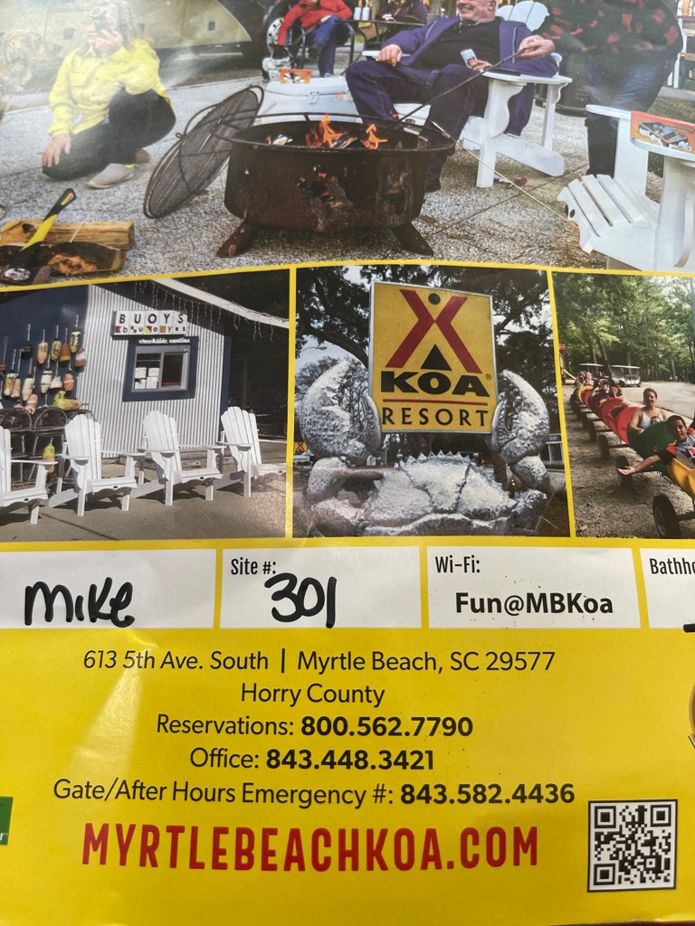 next onto myrtle beach sc KOA. off the highway it was 55 mile strip to myrtle beach.