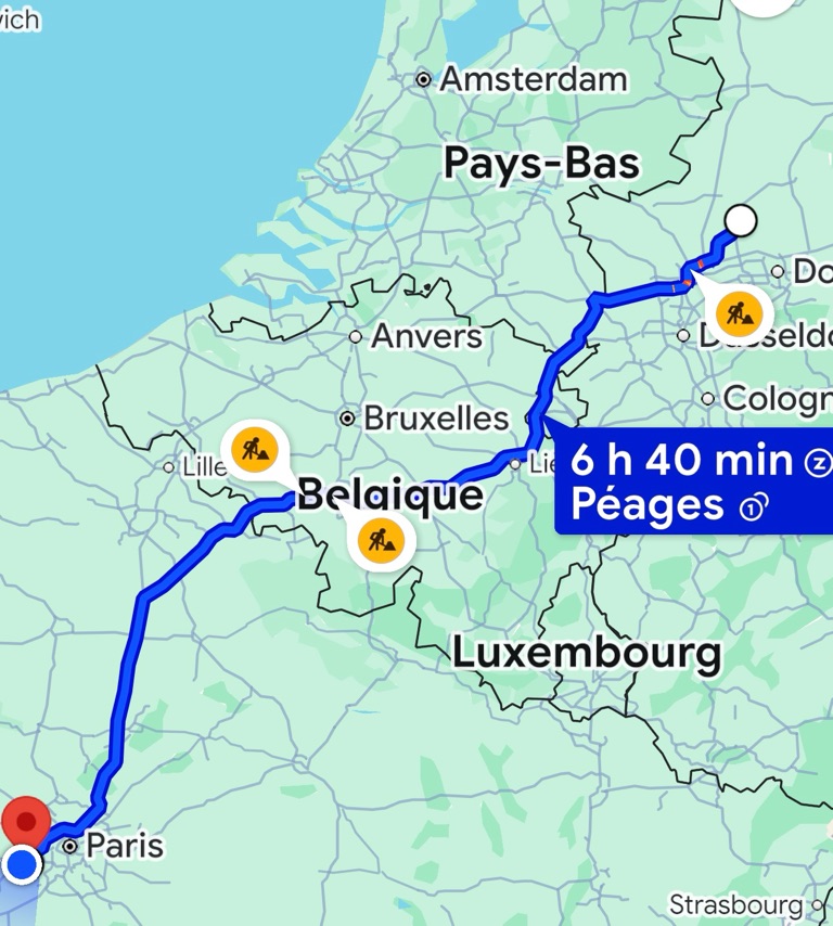 Les vacances commencent avec une première difficulté : l’autoroute A13 est fermée. Il va falloir faire un détour par l’Est pour contourner Paris. De nombreux bouchons.