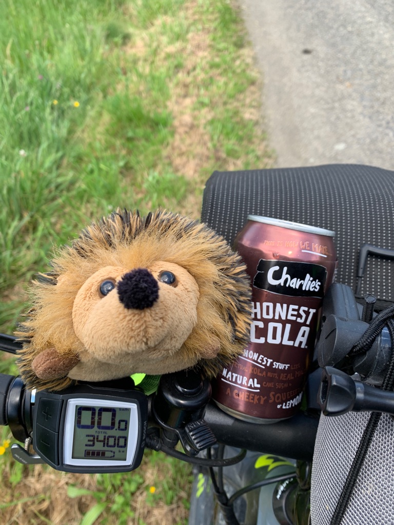 The longer it pours, the more difficult cycling becomes. It’s hard to see where best to aim the front tyre for traction and I find myself constantly slipping and sliding sideways each time no less scary than the last. Amazingly I only come off once for the entire day. I hit a water filled rut at what I thought to be optimum speed, which is just a little faster than slow. This had been working for me for several hours in similar situations but on this occasion my tyre skewed away quickly and I ended up doing a sideways slide that gave Bob a snoutful of water and my leg a minor graze. Worst off were my right side panniers which instantly tumed from yellow to dark brown. They took the brunt of the slide and amazingly on inspection were not at all damaged but just filthy. Poor Bob was less than impressed with my abilities as his seatbelt hadn’t restrained him and he was unceremoniously dumped in the mud. When retrieved he was now double his original weight and I belted him on more tightly. I’m constantly surprised how many peoples actually think he’s real, several more today have exclaimed in surprise that I’d take a pet hedgehog on such a trip only to look sheepish once I’d explained.
