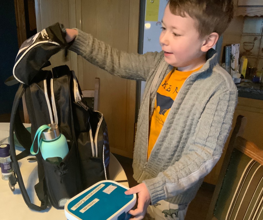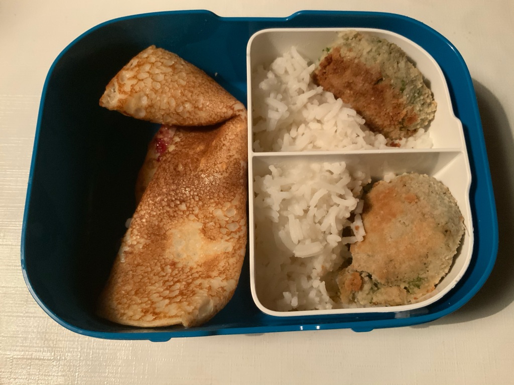 Igår hade jag förblöt lite ris eftersom det var flaggdag och alla rötter hade tagit slut. Nu fick han detta ris och kycklingfiléer med sig i matpacken tillsammans med ett äpple. Jag kunde spåra lite mer tics när vi kom till klarinett lektionen då han skulle rätta till småsaker och smälla lite extra med dörren. Trots allt märkte jag att intresset för att få ljud i klarinetten blev större så han mer eller mindre glömde bort ticsen.
