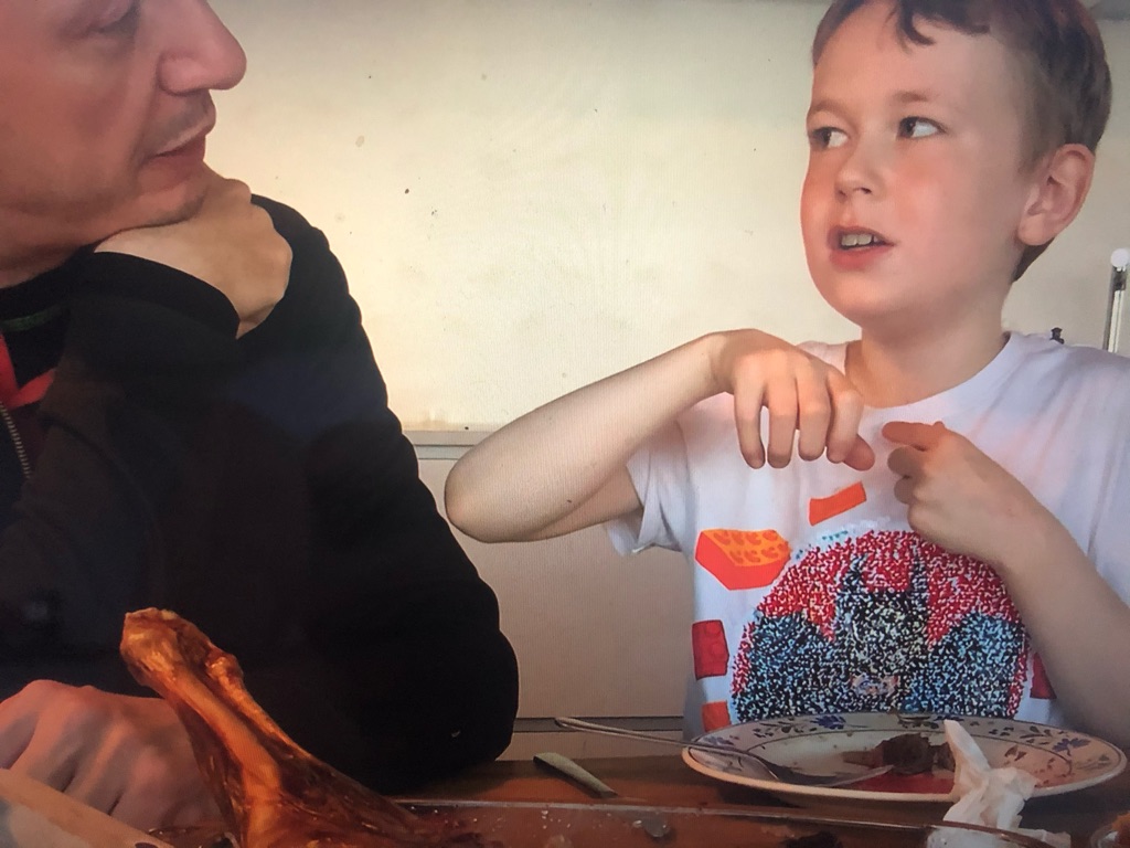 På tisdagen gick vi till Thai restaurangen och efter jag kavlade upp ärmarna på Maynard blev han gråtfärdig. Tidigare under dagen när vi cyklade tränade vi bromsning och då blev han också ledsen när jag blev ilsket sa till honom att bromsa. Bunda var tyvärr inte i restaurangen fast hon kom senare då vi precis skulle gå. Förtjust att se Maynard gav hon honom frukt i köket men fick inga kramar tillbaka. När vi skulle gå på promenad efteråt vid akvarell museet kändes Maynard emotionell och började springs iväg en lång sträcka vid parkeringen. Jag följde efter och han lugnade sig efter ett tag.