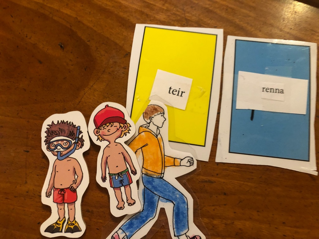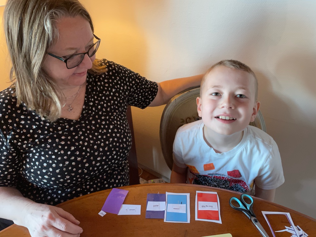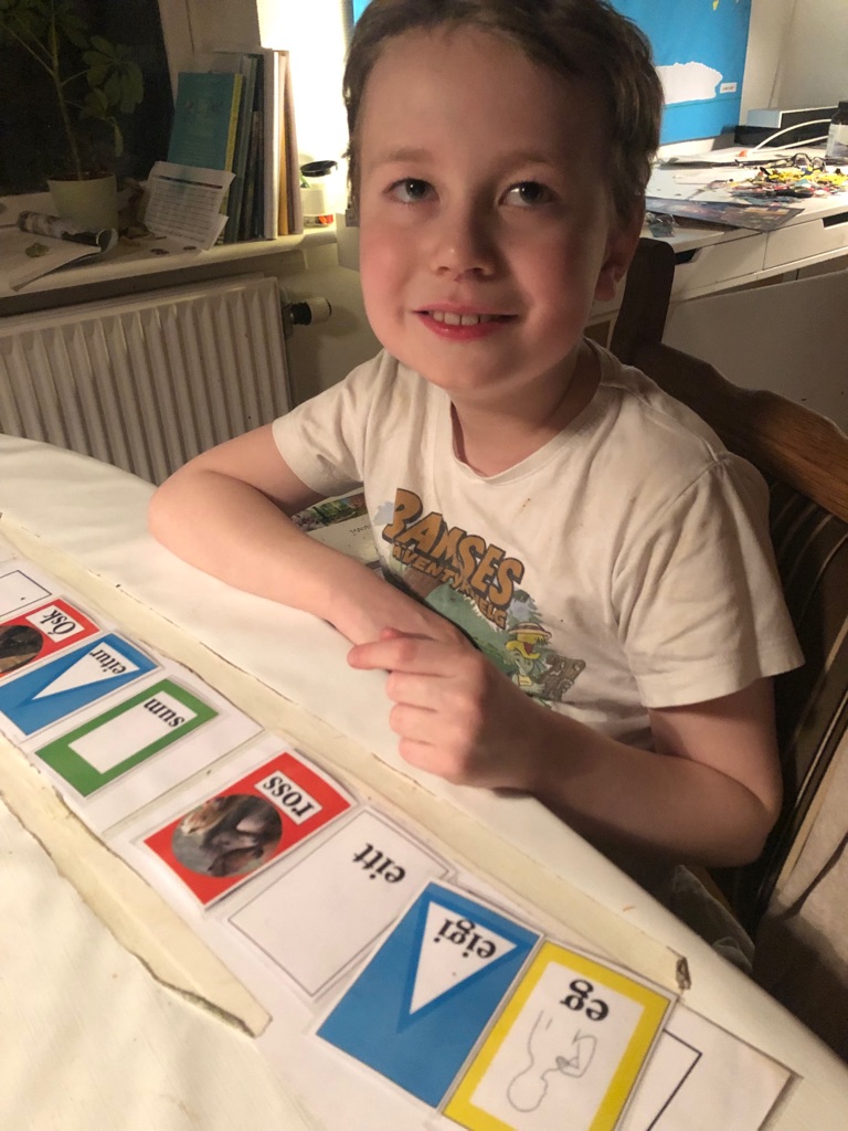 Vi tog det jättelugnt hela dagen på onsdagen fast z-vibe övningarna hade börjat igen och jag och Maynard pysslade med "cut and clue" aktiver ut på altanen. Han gick ofta på toaletten och kändes mycket okoncentrerad.Tidigare på morgonen var Maynard glad och spänd då vi läste saga och vi formade läpparna i sagan då alla bokstaver hittades i boken "Pojken som förlorat namnet".
