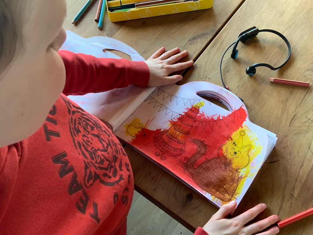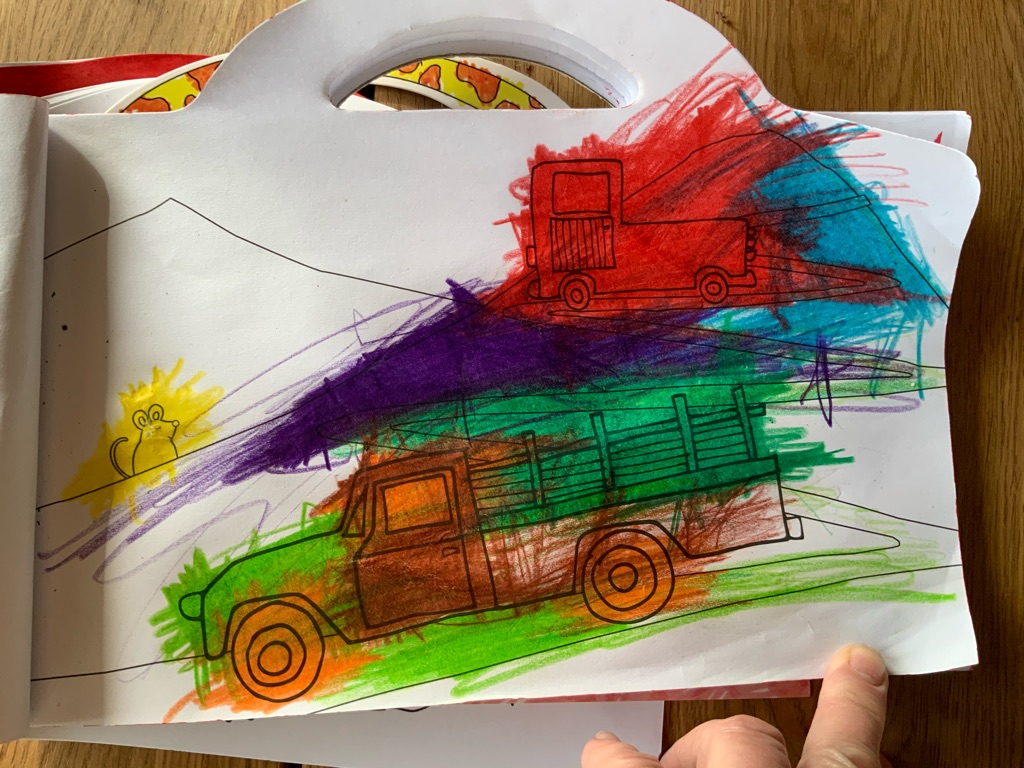 Efteråt läste Maynard en kort bok Mia leker kurragömma och sedan målande han en färgrik bild av en tuppar och hönor som gick utanför ladan. Jag satte på klassisk musik och lät honom tillfreds vara i sitt rum och måla klart trots klockan blivit över elva på kvällen.