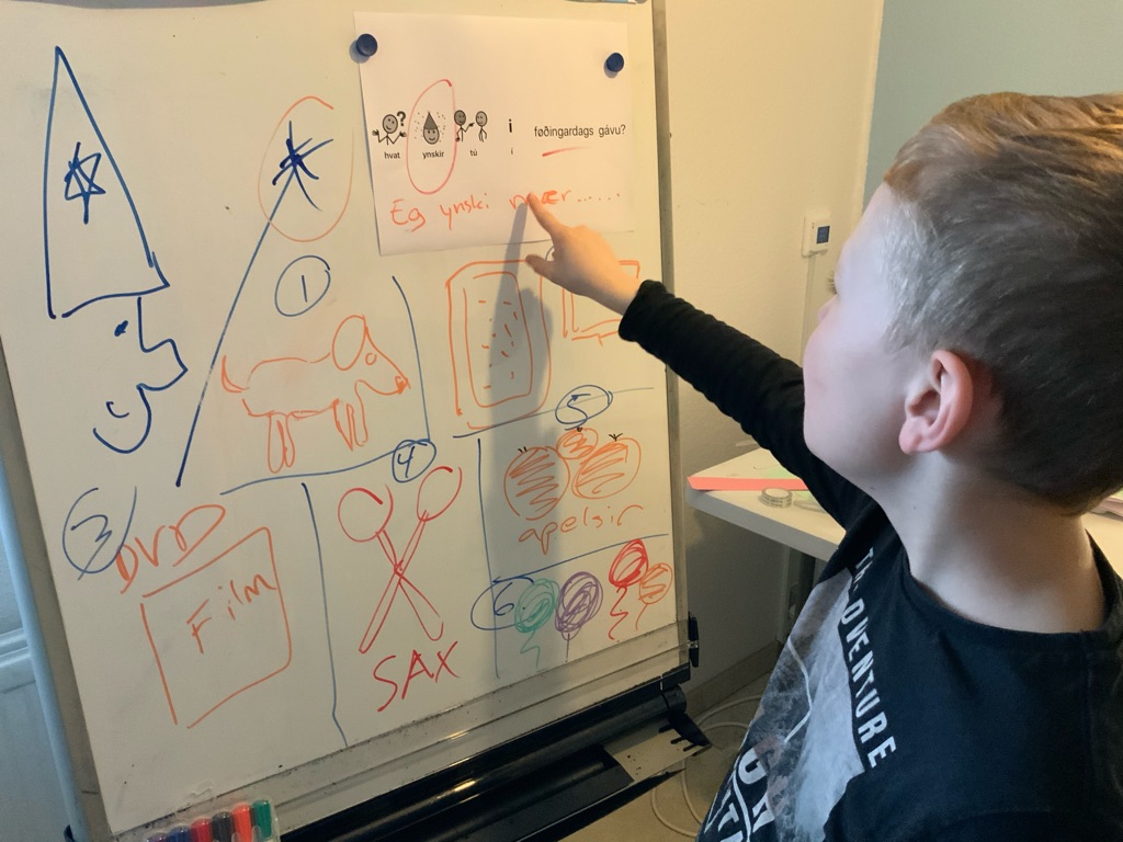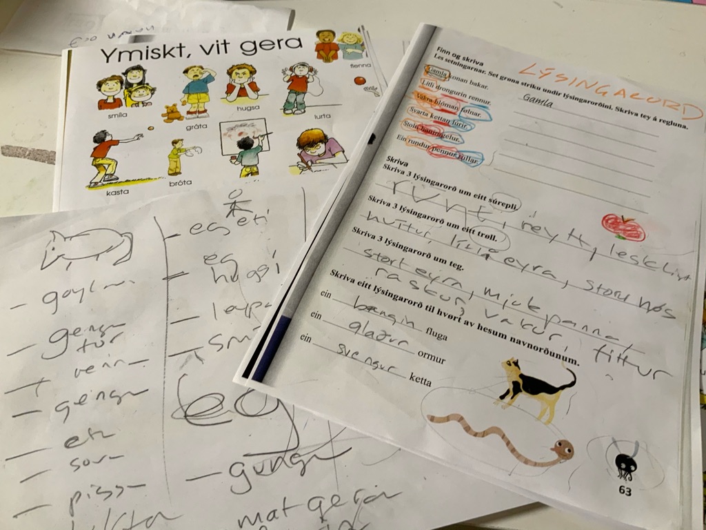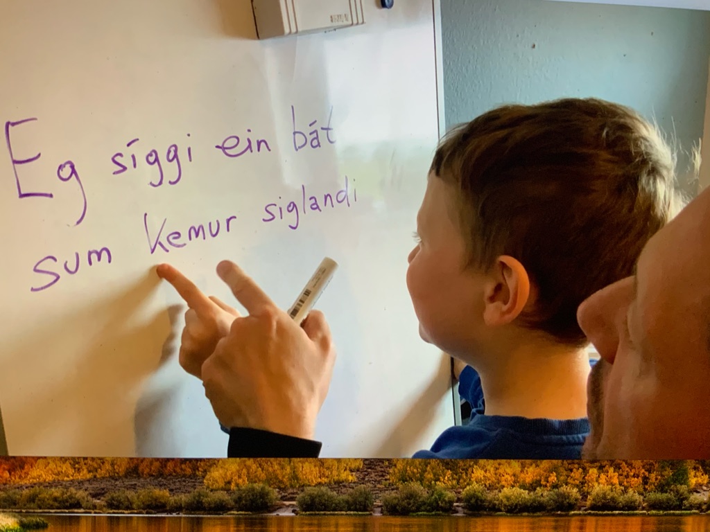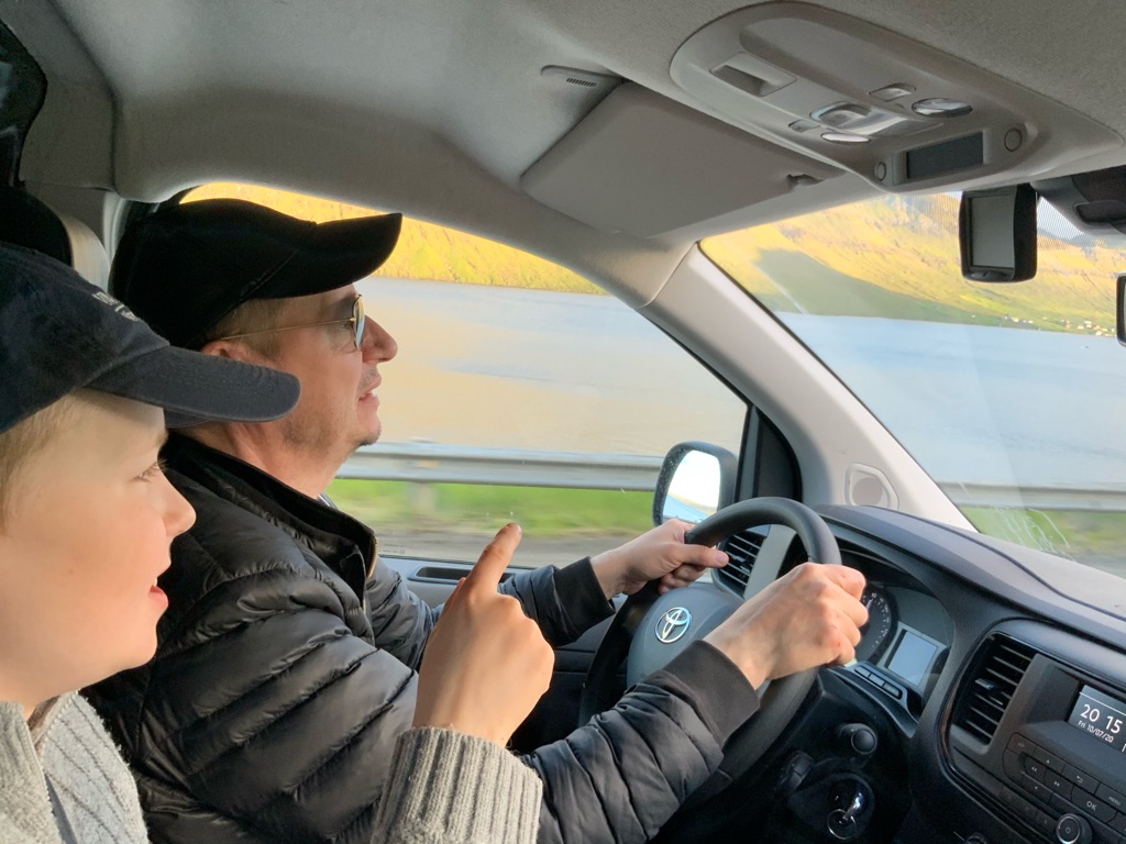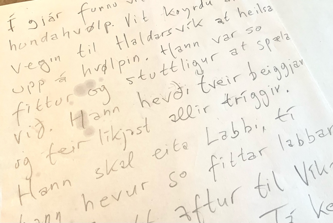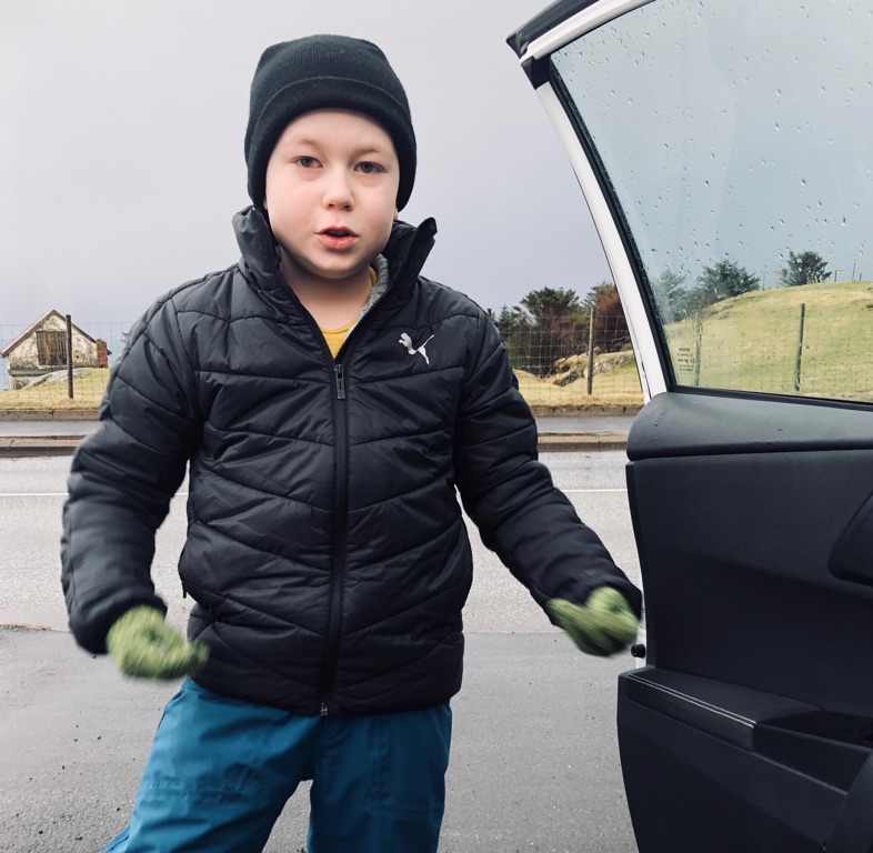 Till min förvåning kom stelheten tillbaka när vi körde till Kollafjordur (jag öppnade fönster för jag vet det är lite mögel i baksätet). Hans röst blev svagare och svagare när vi sjöng ”hjulen på bussen körde runt och runt” och jag blev både ledsen och frustrerad. Vi skulle iväg på social träning hos Birna och Regin och jag ville Maynard skulle vara i lite bättre form än vad han nu var. Ännu en gång verkade han sjunka in i stelhet och frånvaro av omgivningen trots både taurin, a-vitamin, seratonin support och till och med lite jod på morgonen.