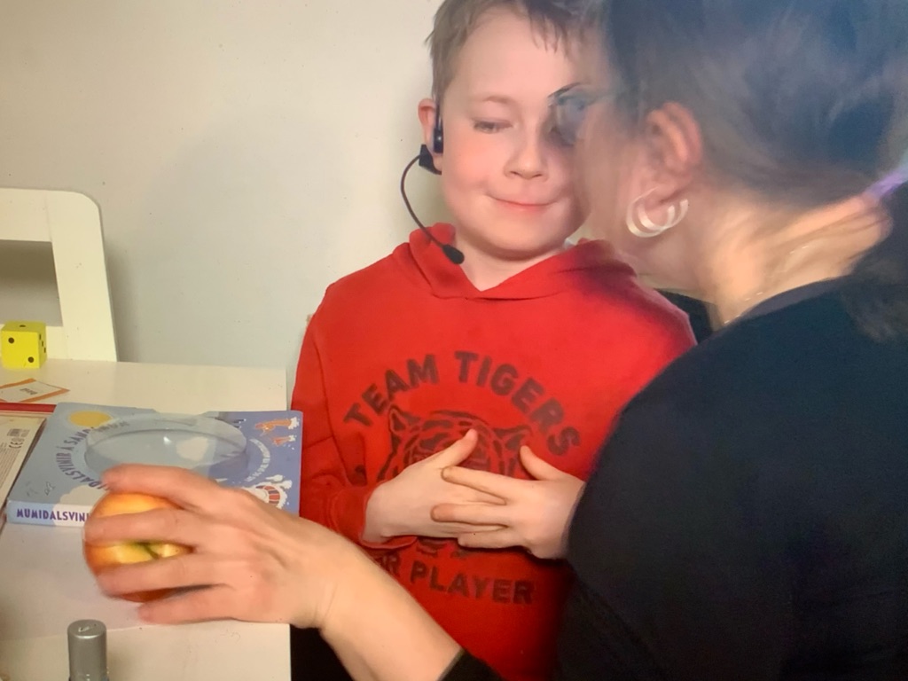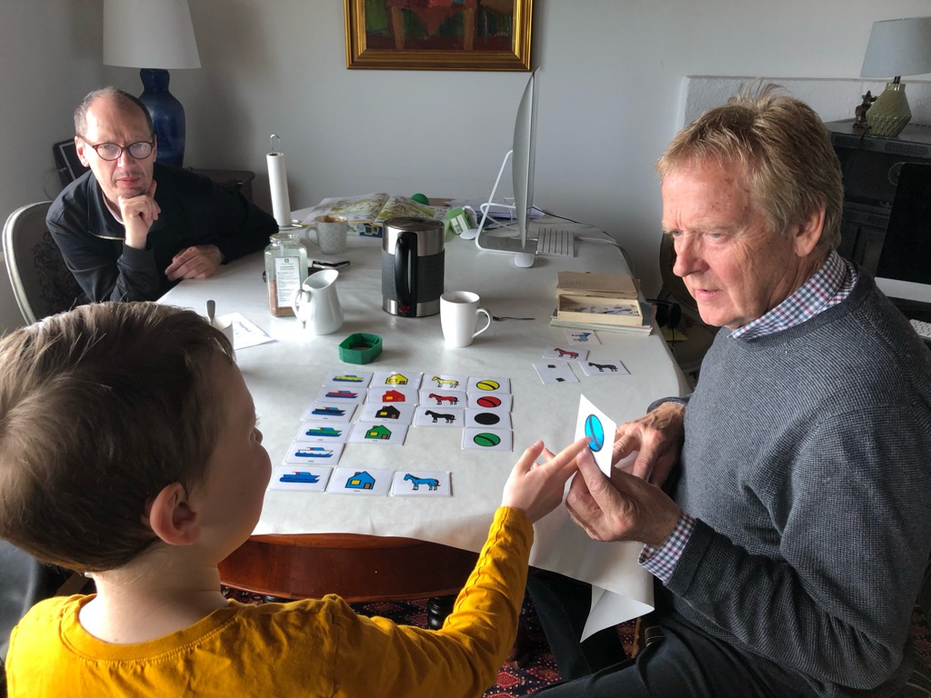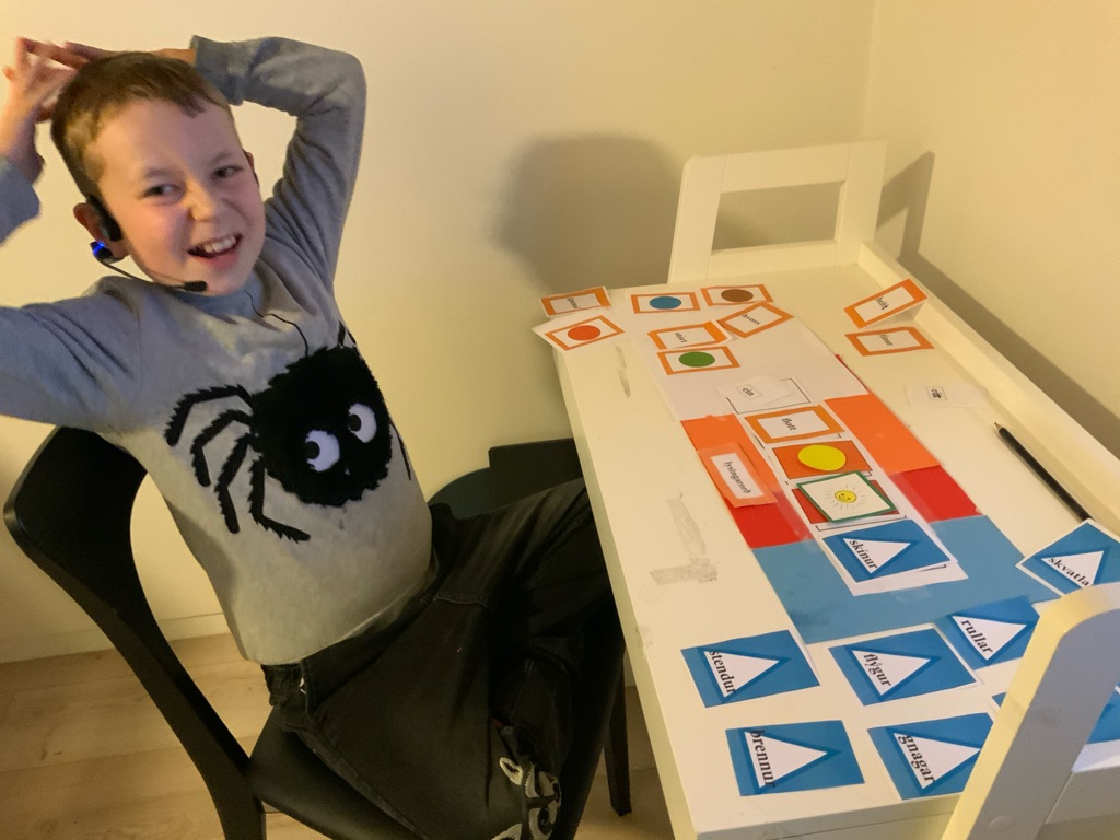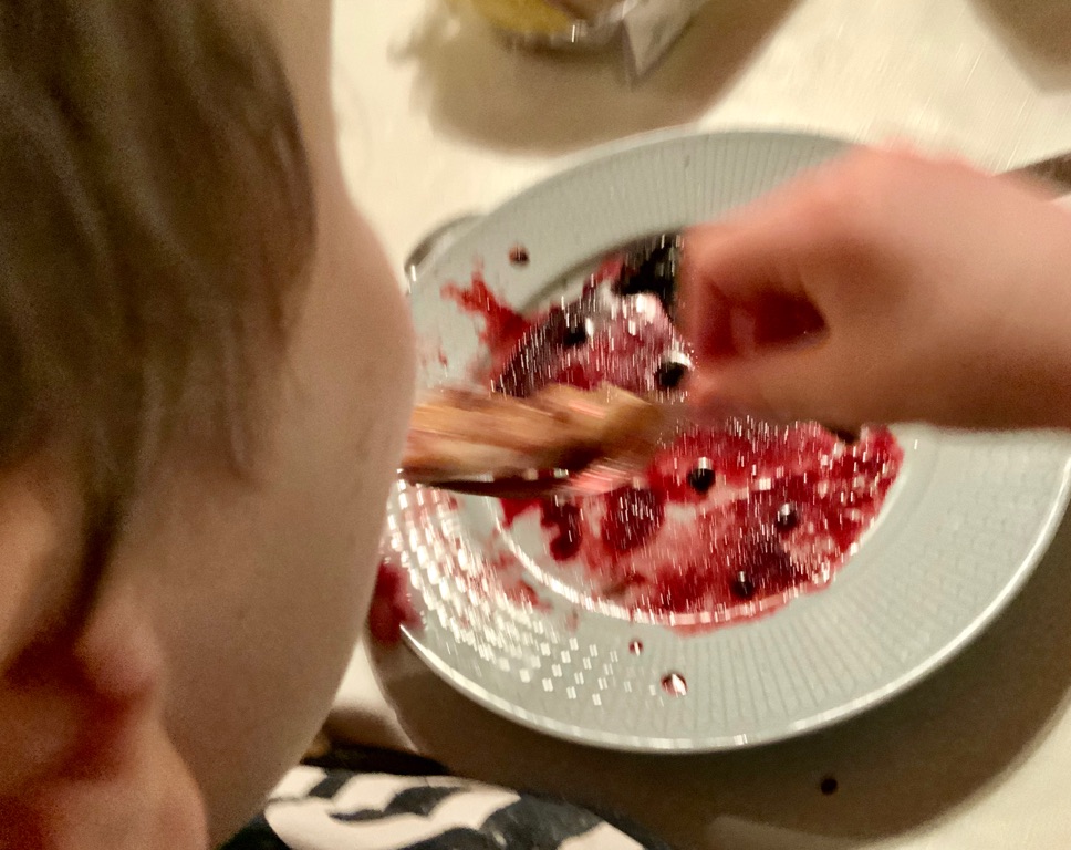 Annars blev jag väldigt förvånad när jag insåg att ljudet var fantastiskt idag efter vi åter ätit gårdagens blåbärstårta med jordgubbsfyllning i en gluten tårtbotten (färdigköpt). Även igår interagerade han överraskande bra när vi spelade Fiska efter tårtätandet (försenad firande av min födelsedag). Han var också allmänt kognitivt bättre än förra veckan och ganska intresserad av att interagera även om han samtidigt var otålig och ville göra allting mycket snabbt.