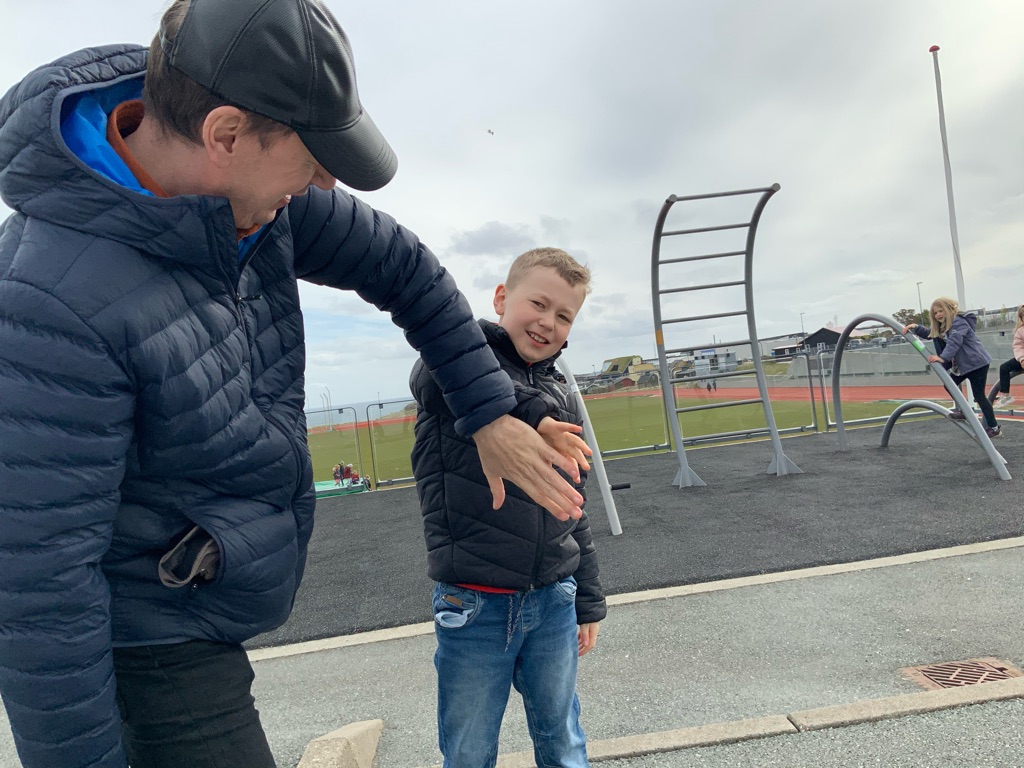 Maynard var matt hela dagen. Vi åkte en liten utflykt till Stenungssund alla tre eftersom vi var rädda att han kunde tappa kontrollen. Det var han nära att göra också. Först sprang han förväntansfullt till sin favorit lekplats men bara 10 minuter senare blev han trött -- och själv frustrerad över sin trötthet. Han sprang okontrollerat över til en fontän och när han kom fram fortsatte han upp mot parkeringen. Jag höjde farten för att hinna ikapp. Jag lyckades vända Maynard och när han sprang tillbaka ringde jag Bui andfått att han skulle komma. Bui hann precis komma och ta emot Maynard när han höll på att falla ner från balansstocken. För att lugna ner Maynard gick vi utan dramatik över till kulturcafét och tog lite fika.