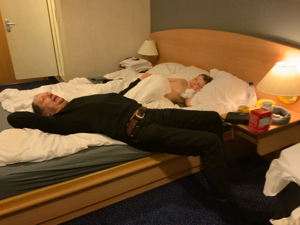 Jag ligger vaken och försöker förstå. Varför vaknade Maynard denna natt och kunde inte sova. Jag ger honom 1 1/2 melatonin och tillsammans med den andra blir det två tabletter. Inte ens det hjälper och vi ligger bredvid varandra och kramas.Varför blir det så? Är det denna sista resa som åstadkommit detta? Hur ska han klara morgondagen med så mycket brist på sömn?
