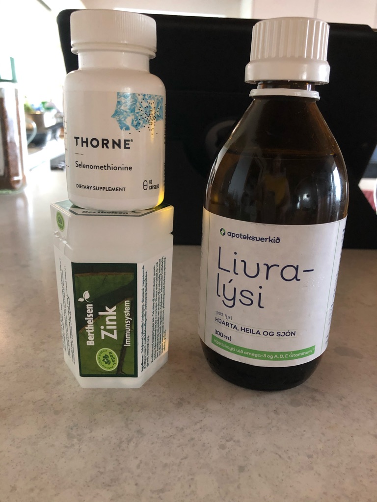 Idag såg vi Goldberg filmen som var full med engelska fack uttryck och termer som används inom biologisk medicin och forskning. Vi förstod inte allt men vi kan ju alltid lyssna om igen. Doktor Goldberg var till och med skeptisk till torsk lever olja och menade på att vitamin A kan sätta igång viruset ytterligare. Som doktor Goldberg själv uttryckte det "very small margin between beneficial effect and poisoning."
