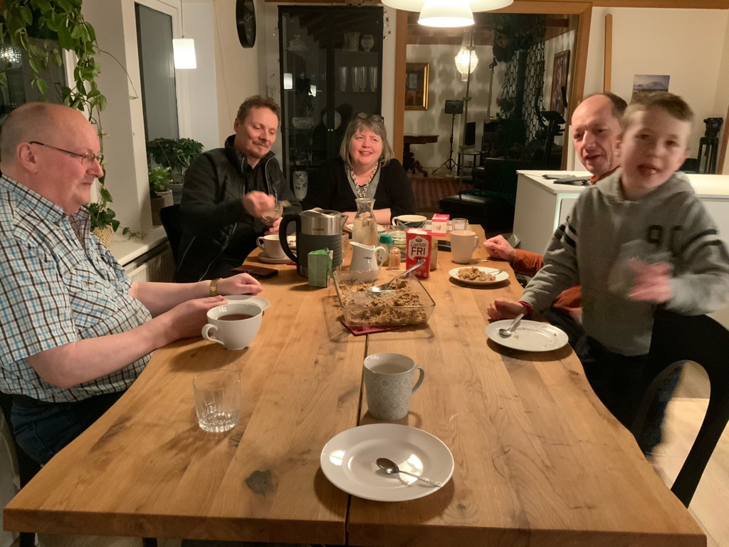 Jag tyckte annars Maynard blev mycket bättre efter jättegoda panerade torskfilér och en frisk blåsig promenad (fick Alnock tablett innan). Förvånat hörde jag att han var mer säker på klartinett tonerna, både när han blåste kort och övergång mellan tonern E och D. När vi gjorde dygnet runt övning i köket var han mer klar i huvudet och svarade rätt än förrra gången även om ljudet var extremt svårt för honom.