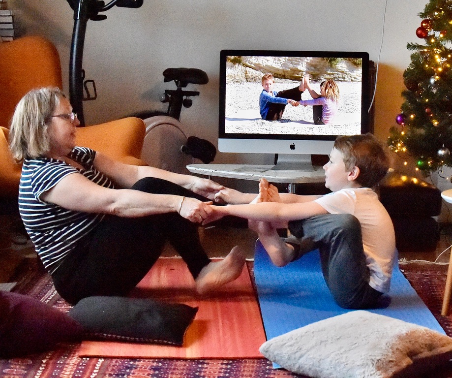 När jag gjorde barn yogan så skrattade han mycket och verkade inte kunna koncentrera sig alls. Han såg inte heller filmen men det kanske var för att det gick alldeles för snabbt. Vi kämpade i alla fall med stol positionen, ormen, katten och till sist lejonet -- och därefter gick vi över till att rita ett lejon med ett stort hår runt omkring i påklistrade "pappers skruvar " som var en hemläxa från skolan.