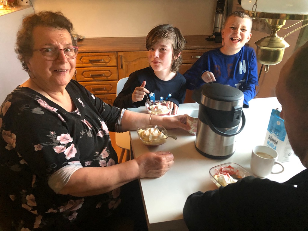 Maynard fick en ordentlig låsning vid tio tiden på morgonen i badrummet. Den första på flera månader. Triggern verkar åter vara vattenkranen som han inte ville sluta med men jag och Bui vek oss inte inför Maynards starka vilja. Medan pappa låste sovrumsdörren blev Maynard tvungen att lugna sig utanför . Det var ”baksmällan” efter igår med farmors bullar och kaka. Dagen innan och torsdag blev det jordgubbar och blåbärs tårta. Inte nog med detta, så fick Maynard ris två dagar i streck (onsdag och torsdag). Jag gav honom nu efter detta utbrott på söndagsmorgen en seratonin support tablett och Bio magnesium plus vilket hjälpte nästan omedelbart på hans humör.