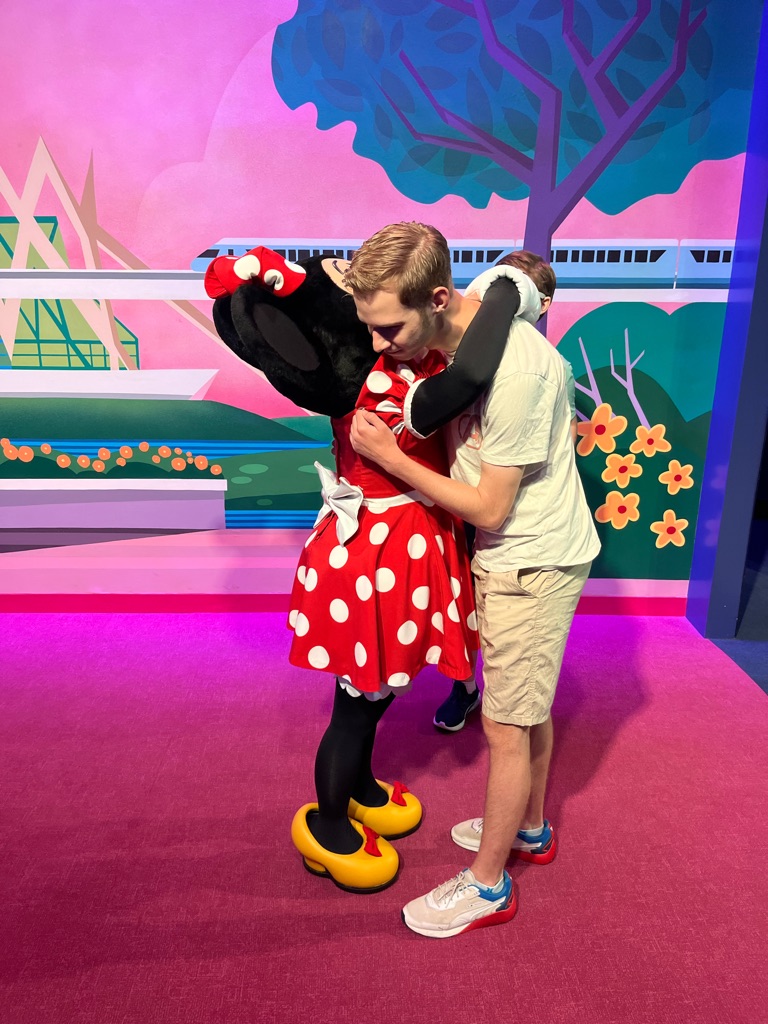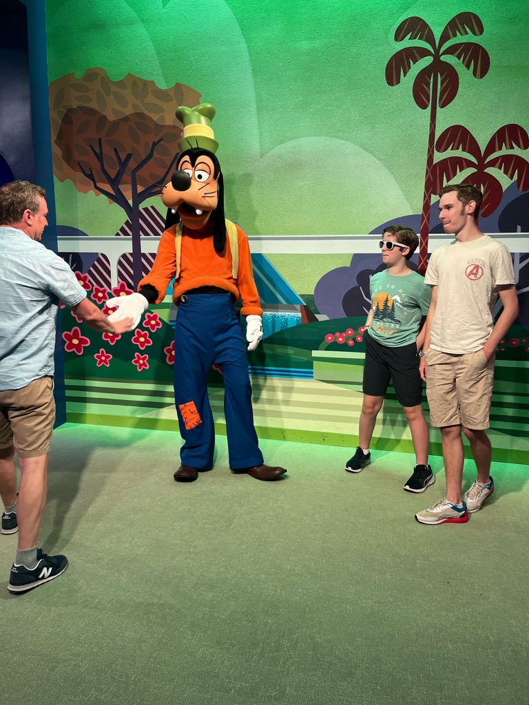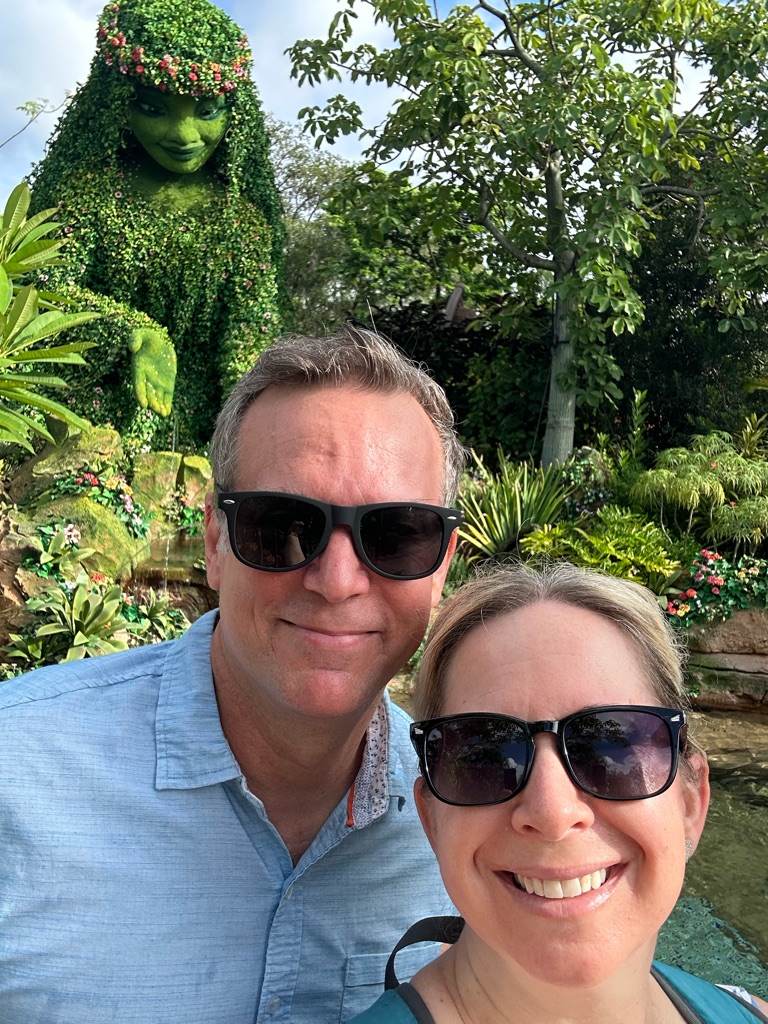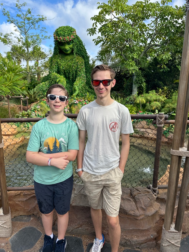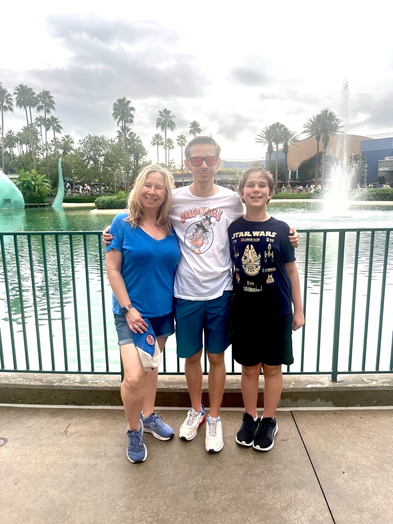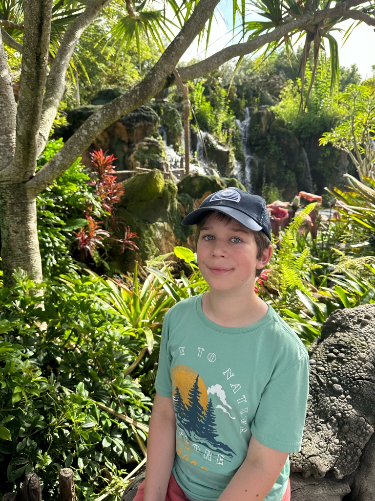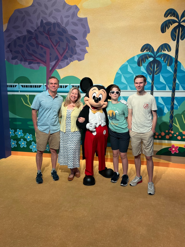He left the room at 8 AM to get into the 8:30 early entry to Epcot. We went on Soaring first and basically walked on! Then we went to take pictures with Mickey and friends… A fun tradition that I’m happy the boys still indulgence us with 😊. Then we explored the new Moana water area, which was fun. Then we went on Nemo and then on Living with the Land (and we walked on both of those). We also walked onto Figment and realized they were doing pictures with Figment! He was just finishing up his first greeting time, so we went to the Pixar short film attraction, and then got back in line to grab a elusive picture with figment 🎉😊