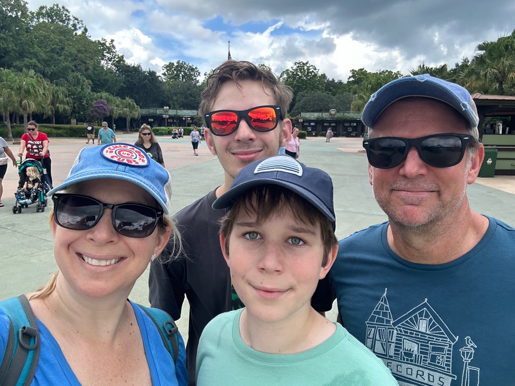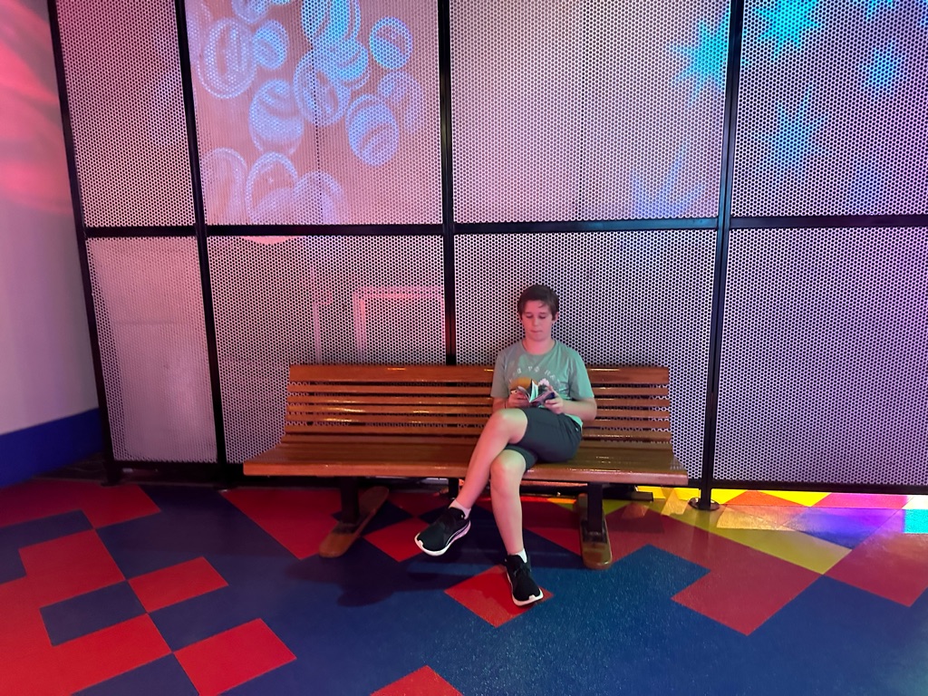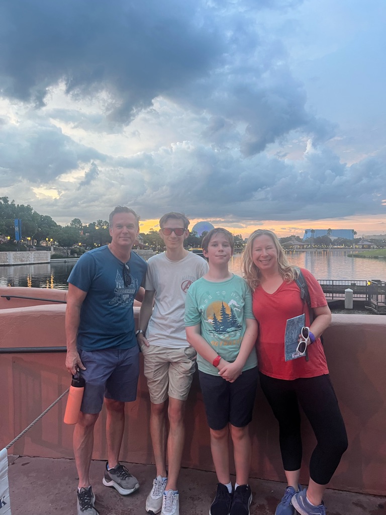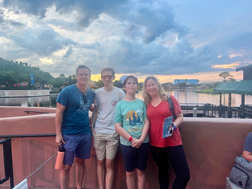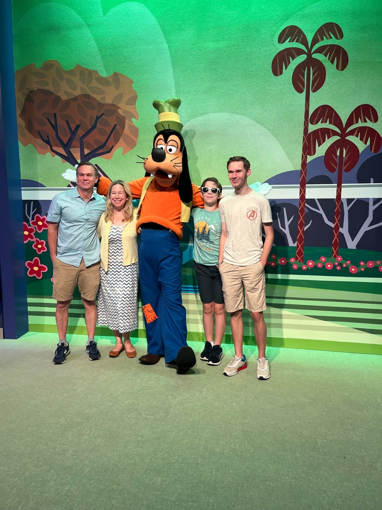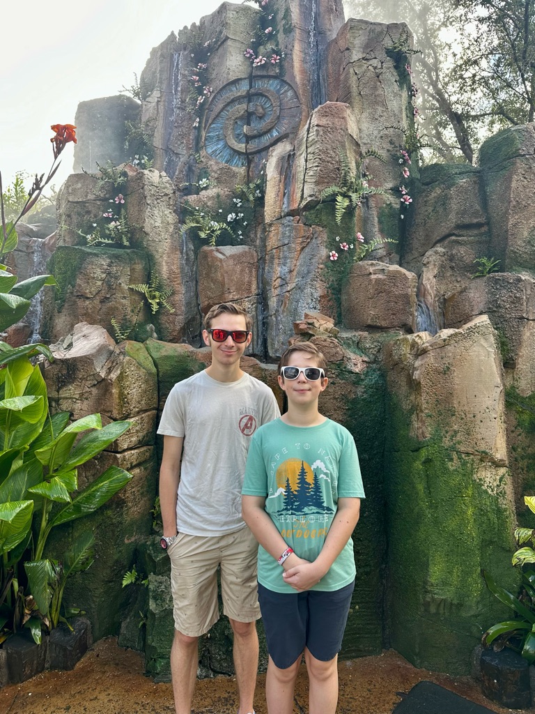 He left the room at 8 AM to get into the 8:30 early entry to Epcot. We went on Soaring first and basically walked on! Then we went to take pictures with Mickey and friends… A fun tradition that I’m happy the boys still indulgence us with 😊. Then we explored the new Moana water area, which was fun. Then we went on Nemo and then on Living with the Land (and we walked on both of those). We also walked onto Figment and realized they were doing pictures with Figment! He was just finishing up his first greeting time, so we went to the Pixar short film attraction, and then got back in line to grab a elusive picture with figment 🎉😊