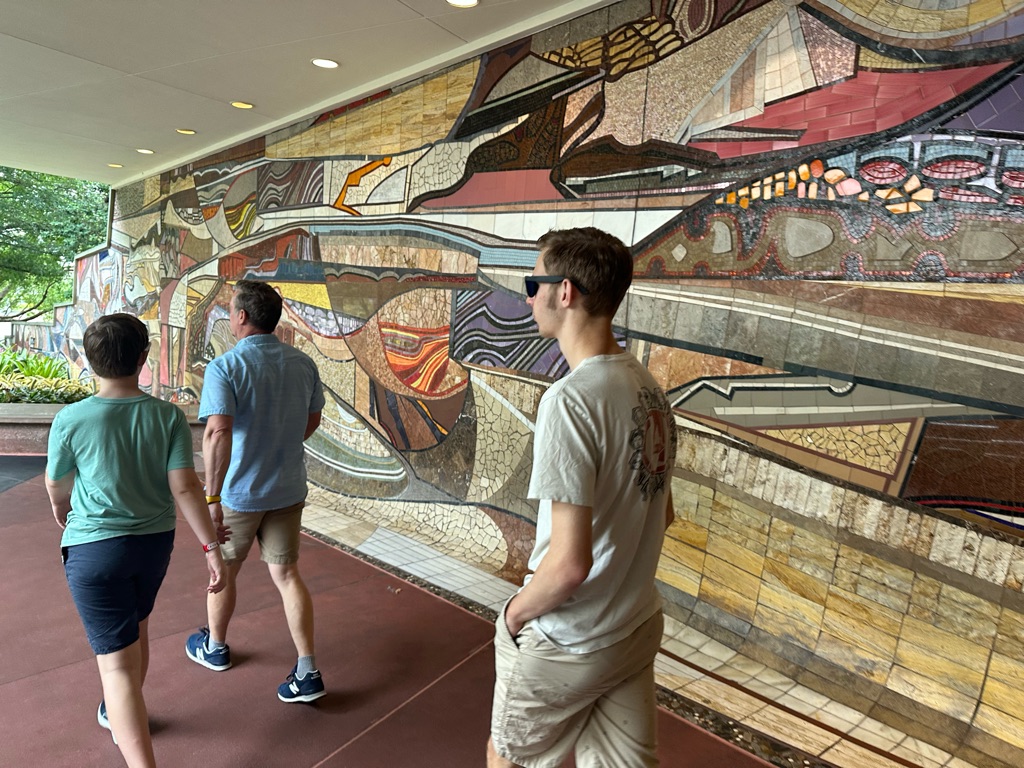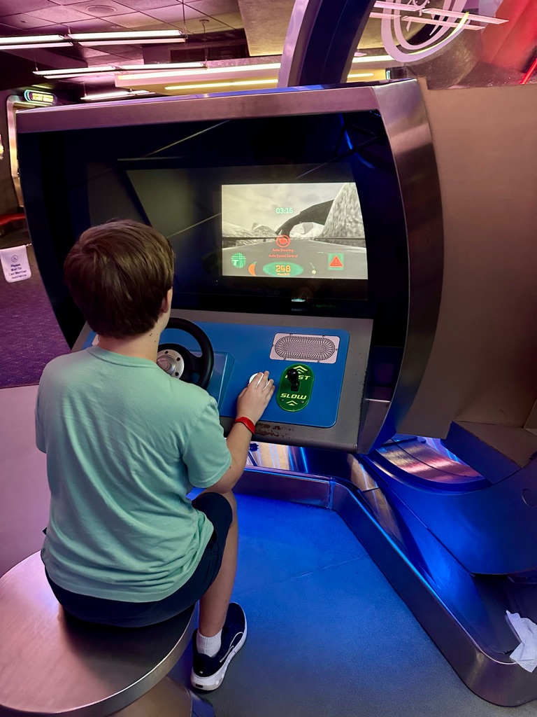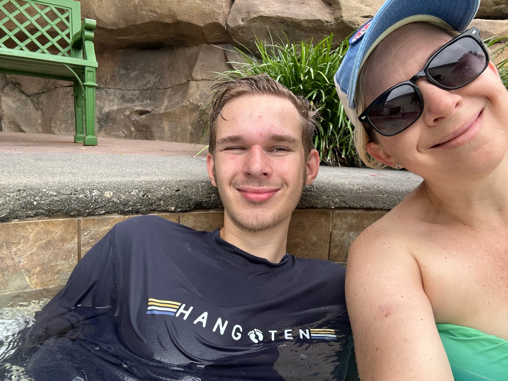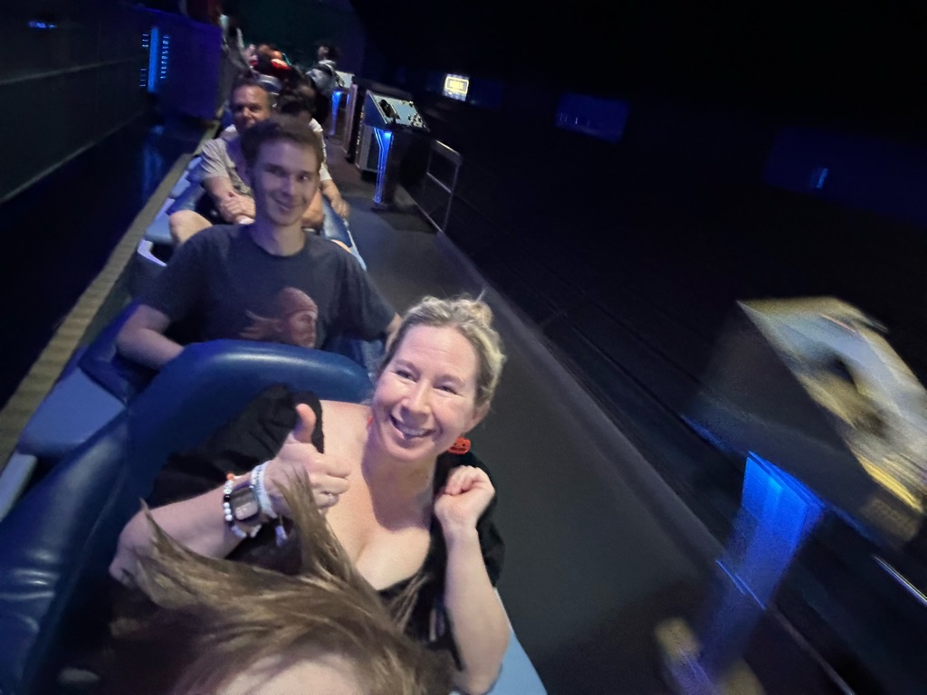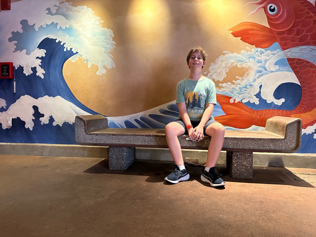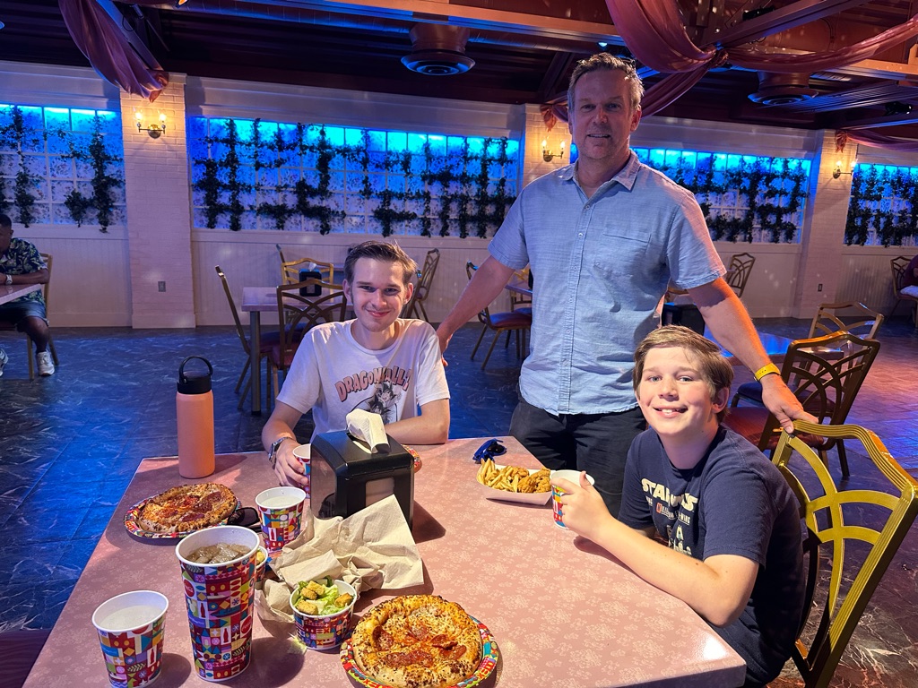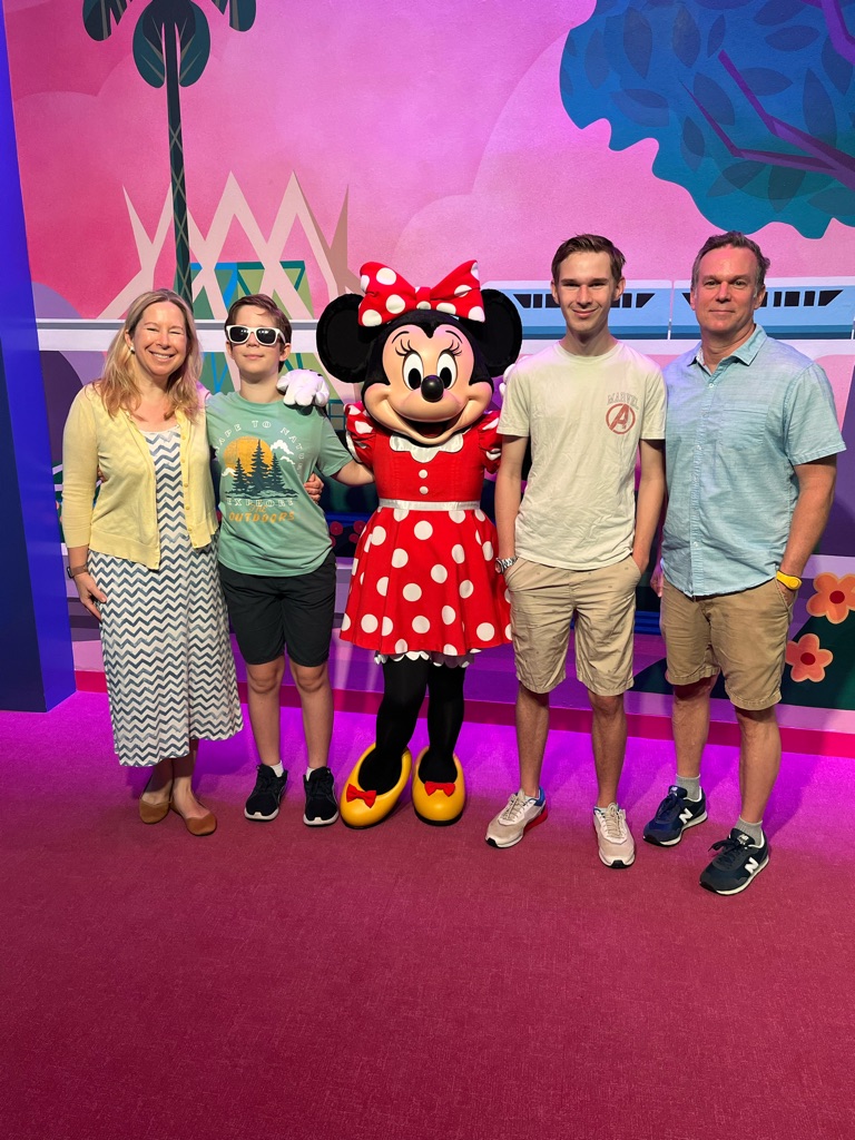 He left the room at 8 AM to get into the 8:30 early entry to Epcot. We went on Soaring first and basically walked on! Then we went to take pictures with Mickey and friends… A fun tradition that I’m happy the boys still indulgence us with 😊. Then we explored the new Moana water area, which was fun. Then we went on Nemo and then on Living with the Land (and we walked on both of those). We also walked onto Figment and realized they were doing pictures with Figment! He was just finishing up his first greeting time, so we went to the Pixar short film attraction, and then got back in line to grab a elusive picture with figment 🎉😊