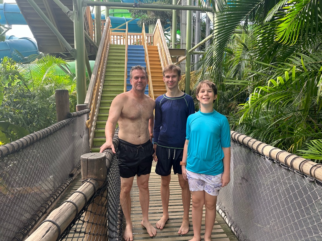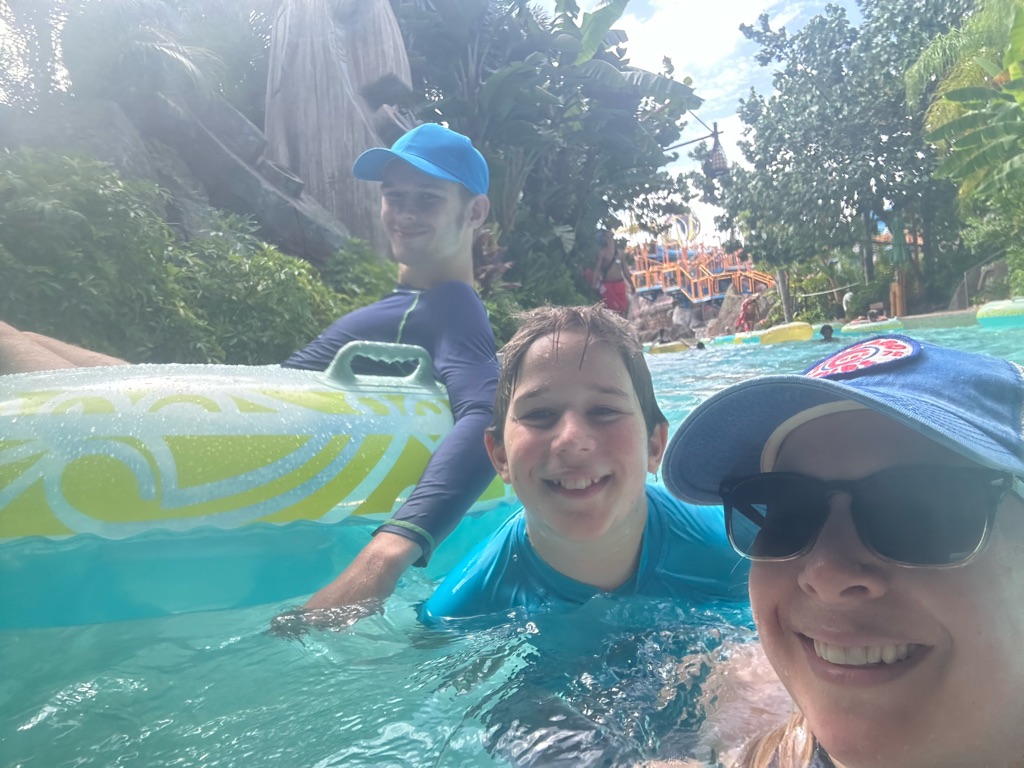 We slept in again until 9:00 - 9:30. Rob ran to the store to get cornstarch for Colin’s chemistry homework. The boys and I went to the main pool. It was empty!