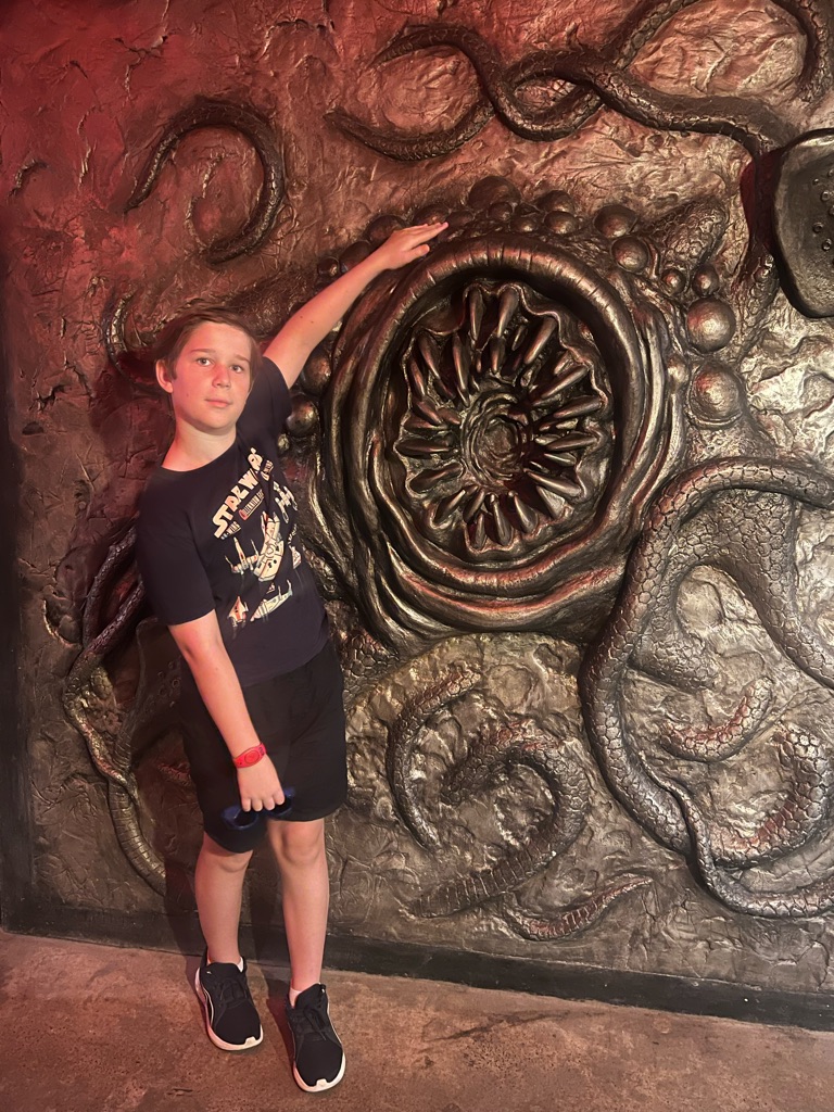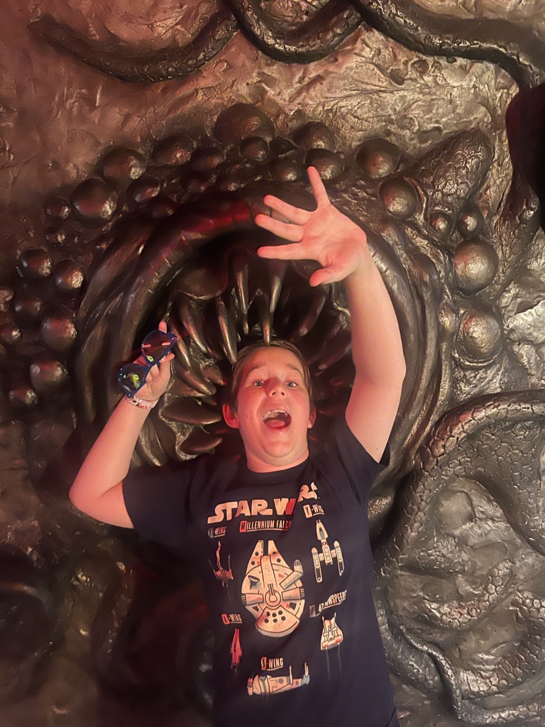 We drove to Hollywood Studios around 1:00 - it was very hot and humid but not too busy (especially because we purchased the “Multipass”. We walked onto Smugglers Run, Rockin Roller Coaster, and Tower of Terror.