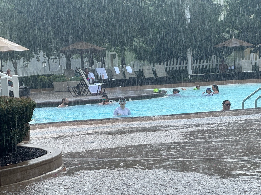 Clark and I went to the pool while Rob rested and Colin did homework. It started to pour while Clark was swimming, but that didn’t stop him!