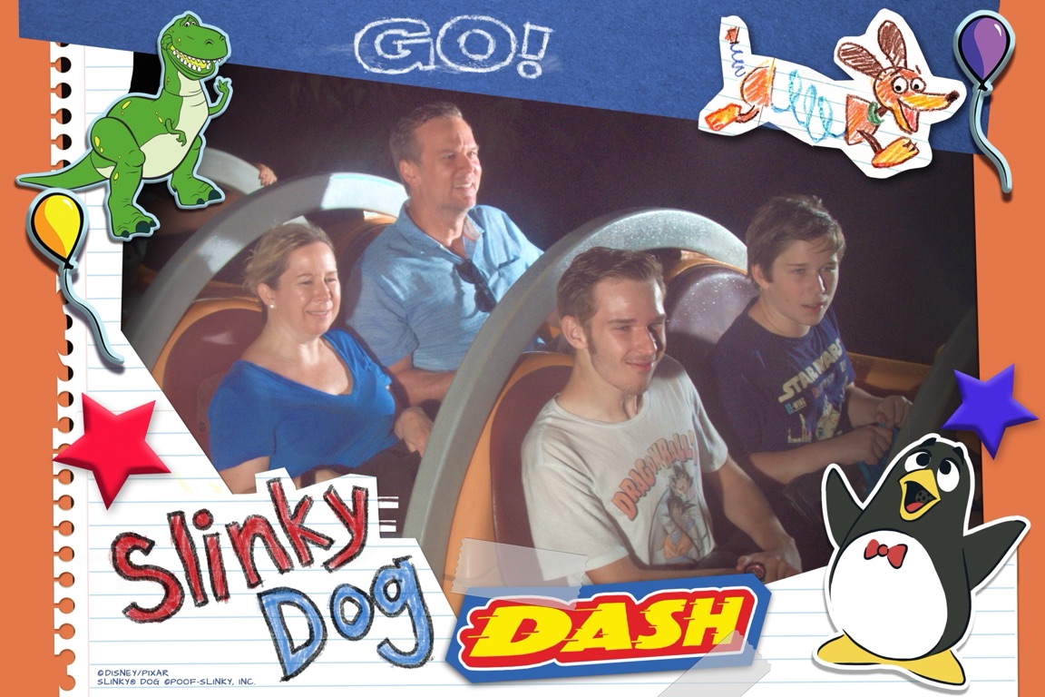 After Toystory, we went on the Alien Spinners. We had a fast pass for Slinkey Dog but we had to wait the rain out.