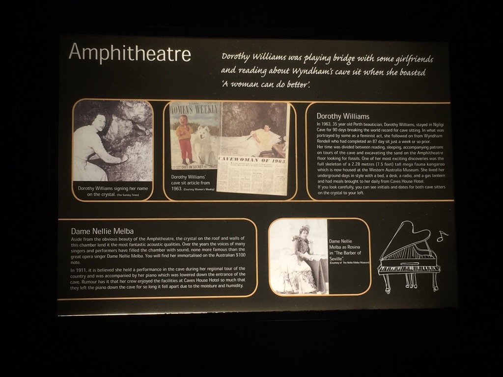 Apparently Dame Nellie Melba also performed here - they lowered a piano down into the cave, but it fell apart in the humidity.