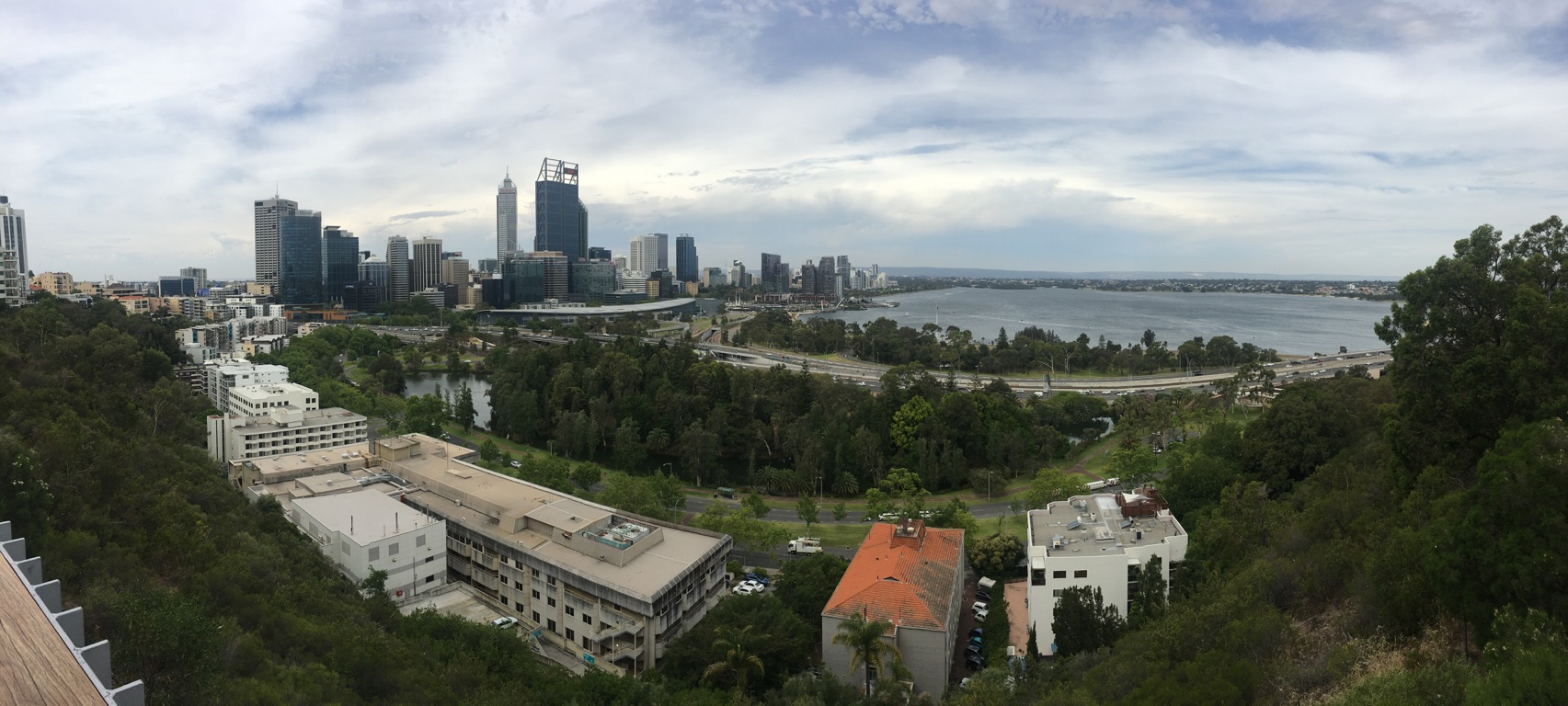 Thankfully, the heat rule was lifted shortly after lunch, when the temperature dropped back to a more manageable 34 degrees. So we drove 10 minutes up the road to Kings Park, which has great views back over the city. The Allens office is in the first skyscraper on the left.