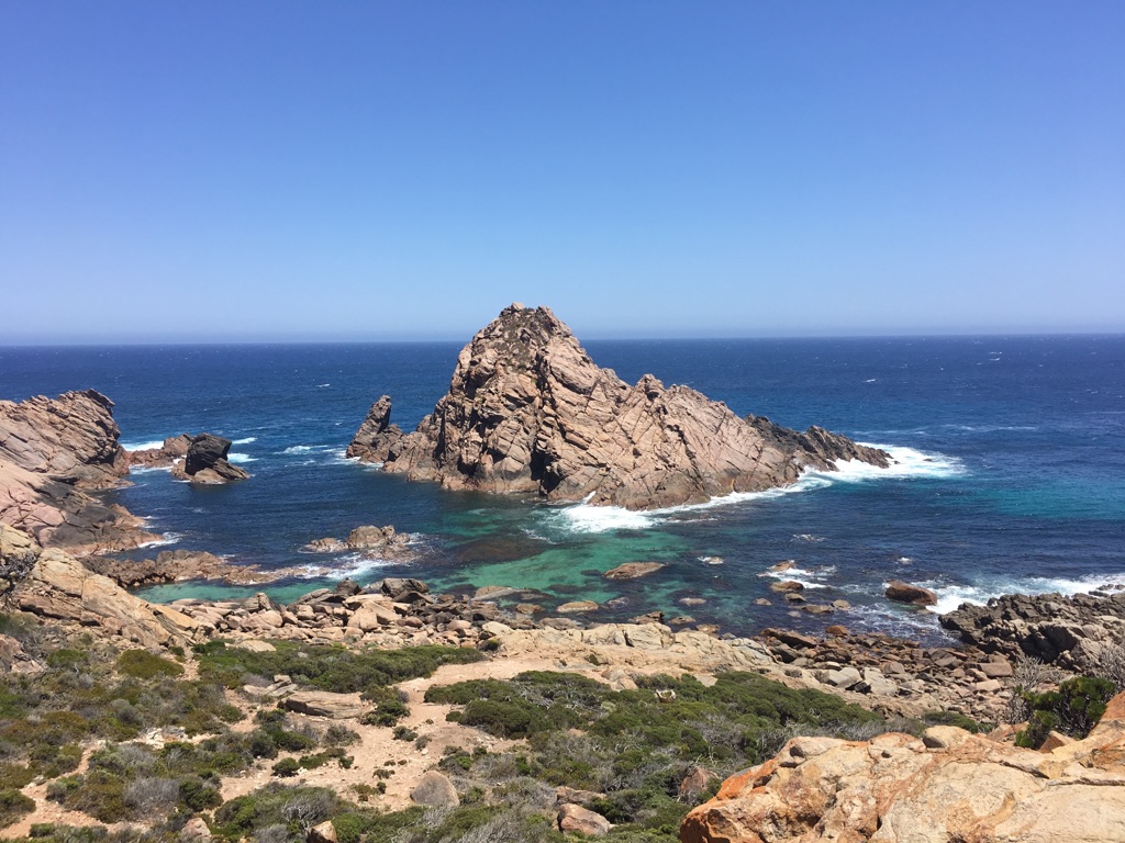Our last day in Margaret River (sadly) - we love it here, and could happily come back again and again. After breakfast and checking out, we drove up to Sugarloaf Rock, only five minutes away. There were lots of "wows" on the way up the narrow, not-much-more-than-dirt road.