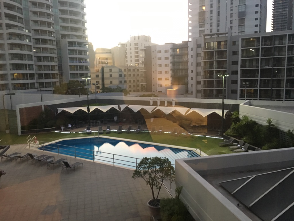 We've arrived safely in Perth! Staying at the Hyatt Regency, with a pool view, free parking and breakfast included. Heading on down now for the complimentary welcome drink at the bar. We definitely don't miss out on much...