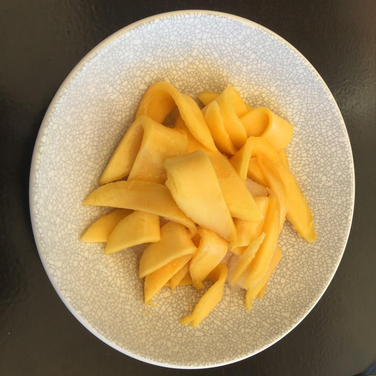 And dessert of mango, passionfruit and lychee. Meg was drinking the Wills Domain Scheurebe, a German white similar to Riesling.