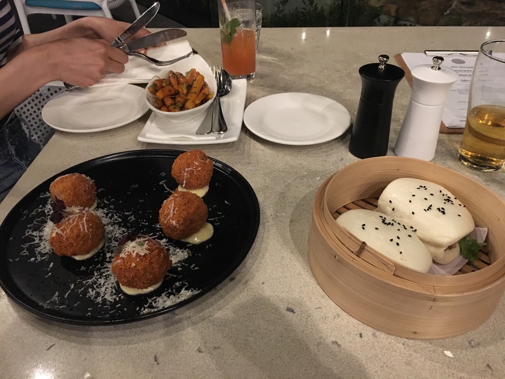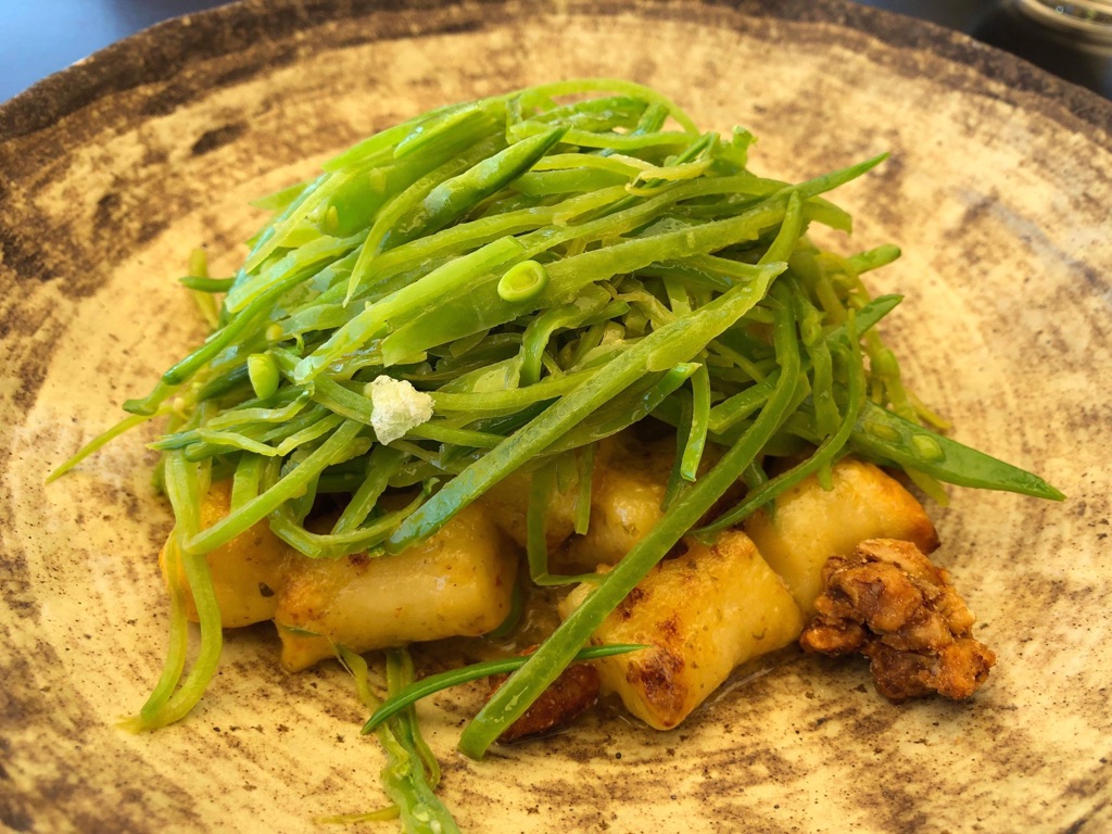 Followed by main of baked potato gnocchi, pecorino, snow peas and walnuts.