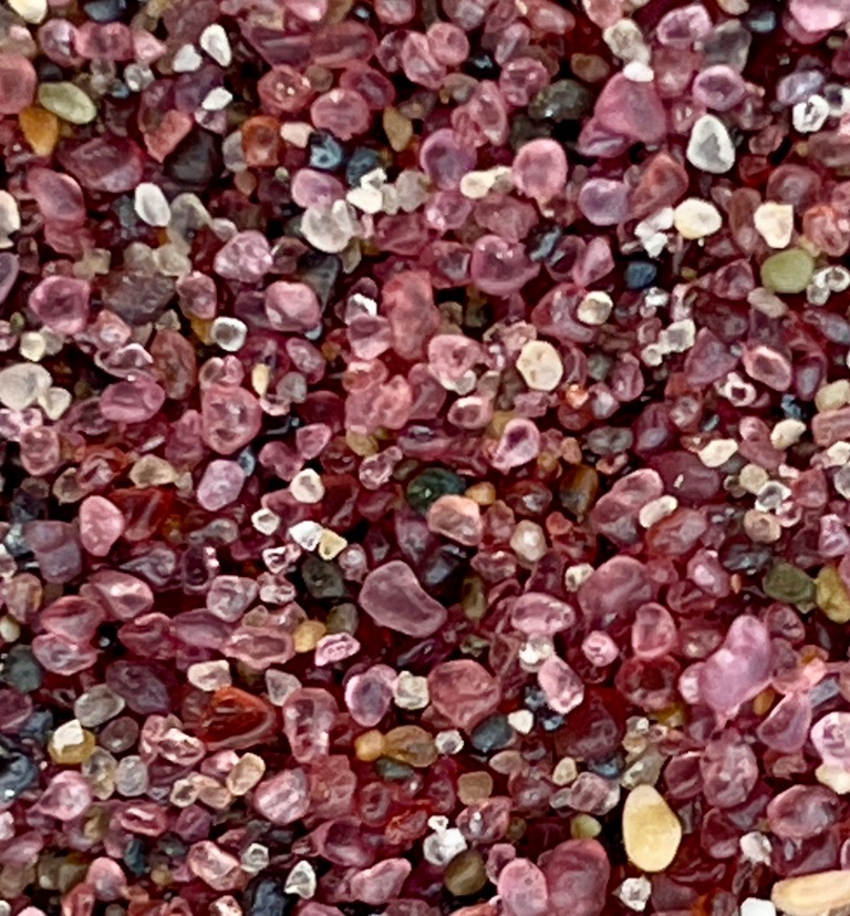 Pink sand that looks like jewels because it is. It is actually sand made of rubies and other precious stones.
