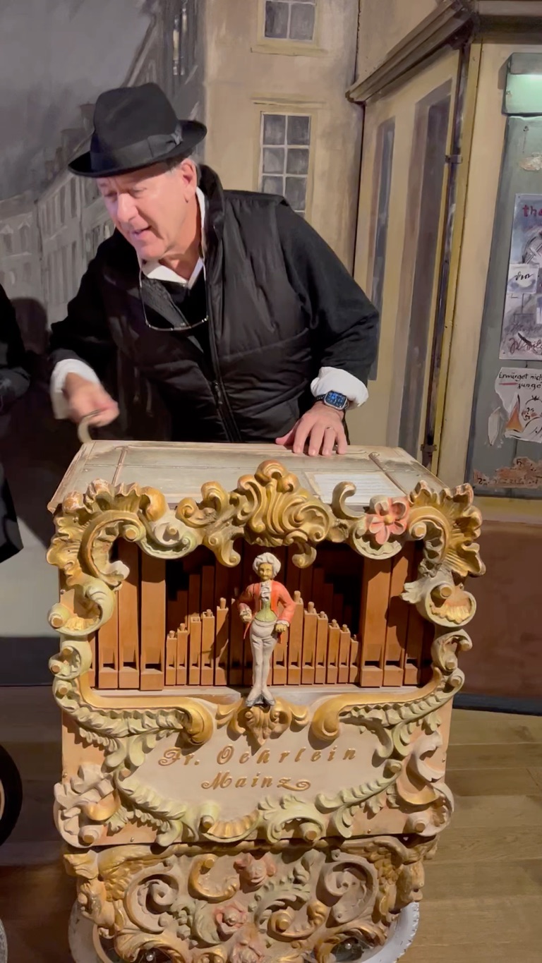 Joe’s alter ego as an organ grinder!! But seriously, the founders of the museum, started their collection by purchasing a broken organ grinder and fixing it and then using the proceeds to purchase another broken organ grinder. The rest… as they say… is history.