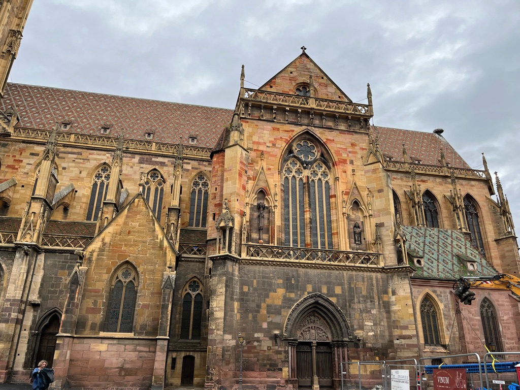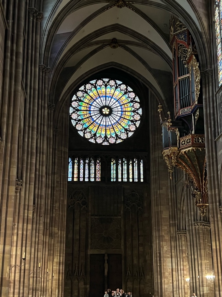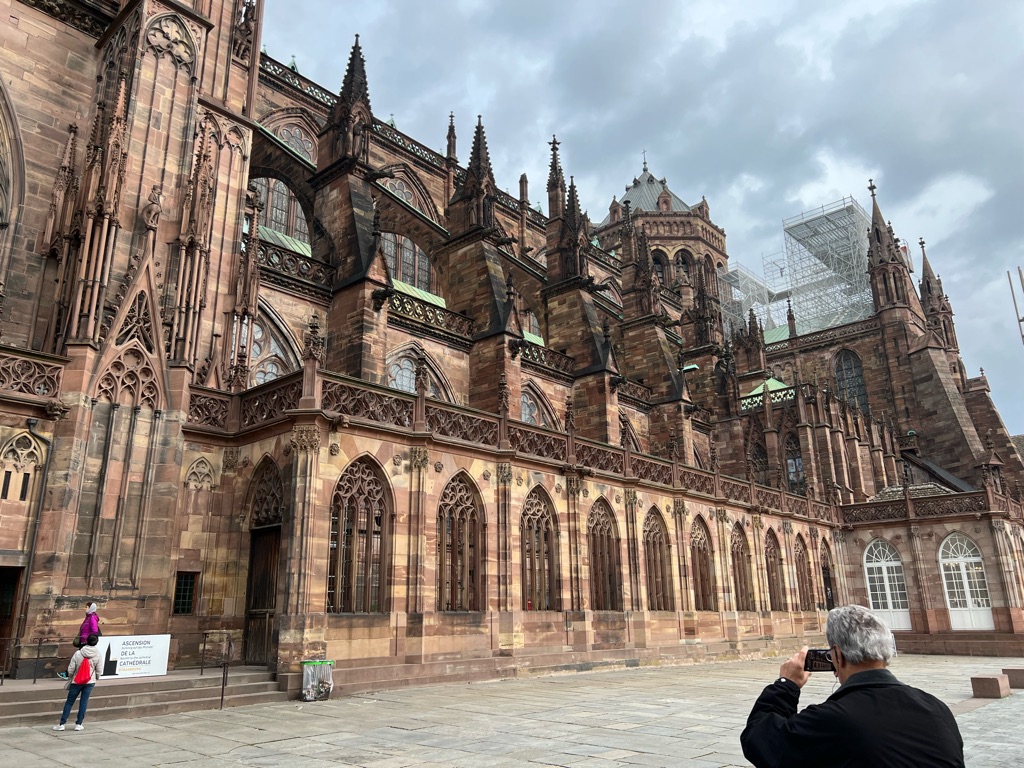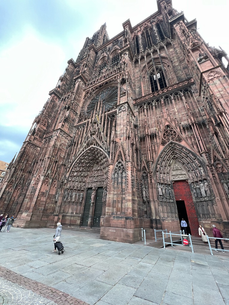 We made our way to the Cathedral Notre Dame of Strasbourg! Although considerable parts of it are still in Romanesque architecture, it is widely considered to be among the finest examples of Rayonnant Gothic architecture. Architect Erwin von Steinbach is credited for major contributions from 1277 to his death in 1318, and beyond through his son Johannes von Steinbach, and his grandson Gerlach von Steinbach, who succeeded him as chief architects. The Steinbachs's plans for the completion of the cathedral were not followed through by the chief architects who took over after them, and instead of the originally planned two spires, a single, octagonal tower with an elongated, octagonal crowning was built on the northern side of the west facade by master Ulrich von Ensingen and his successor, Johannes Hültz. The construction of the cathedral, which had started in the year 1015 and had been relaunched in 1190, was finished in 1439.