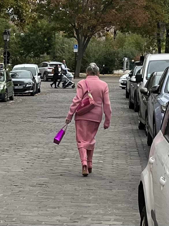 The people were decorated too! This lady is resplendent in \240pink, including pink purse, boots, and shopping bag!