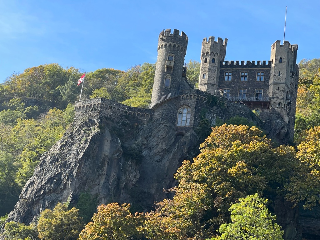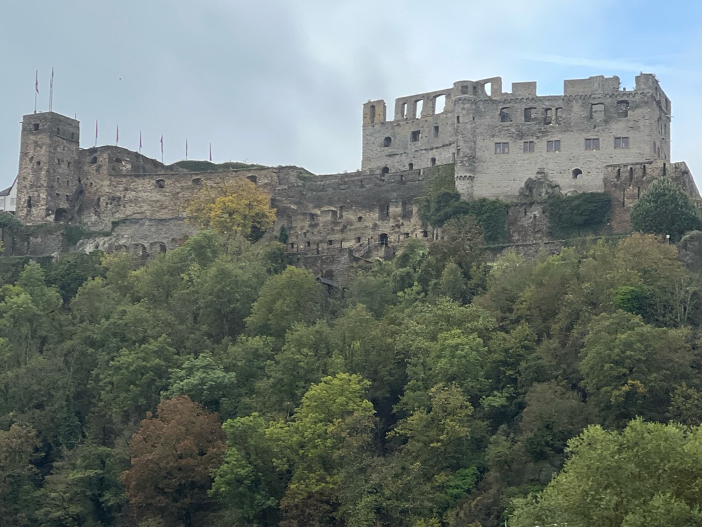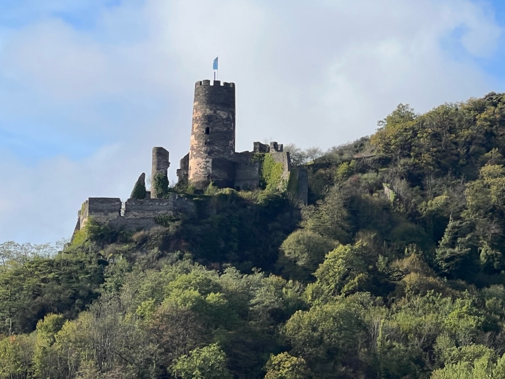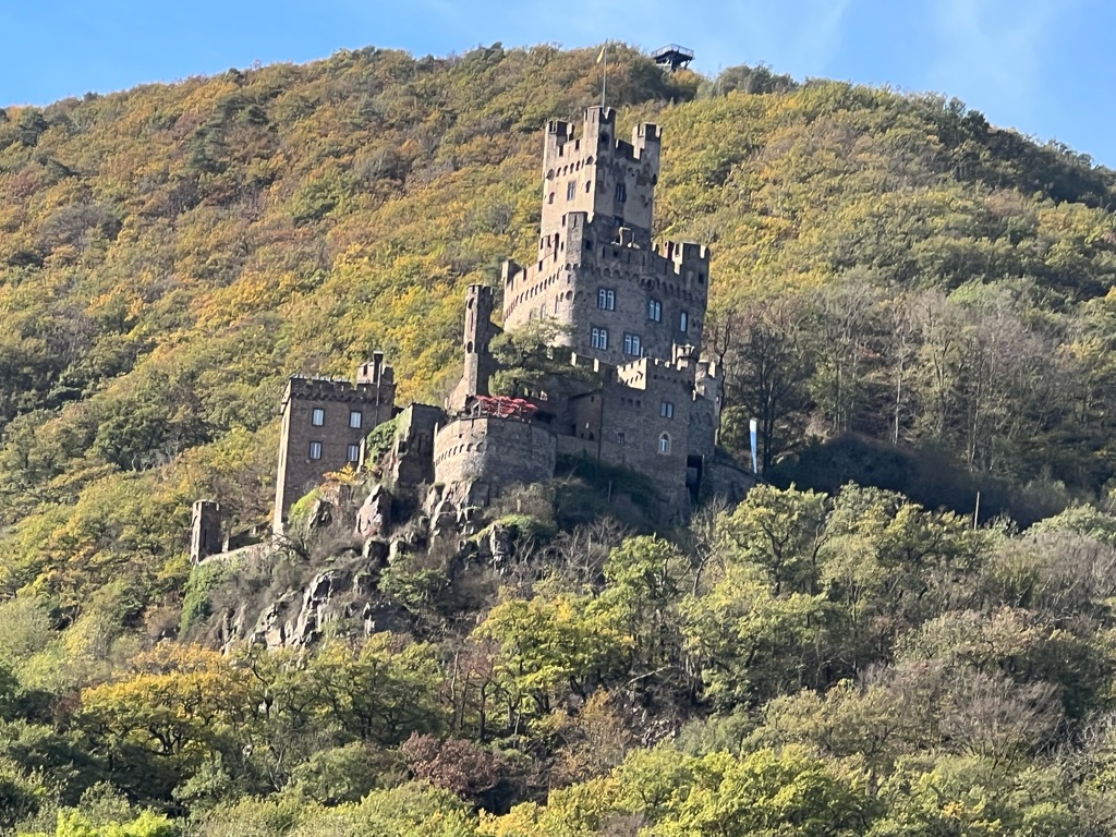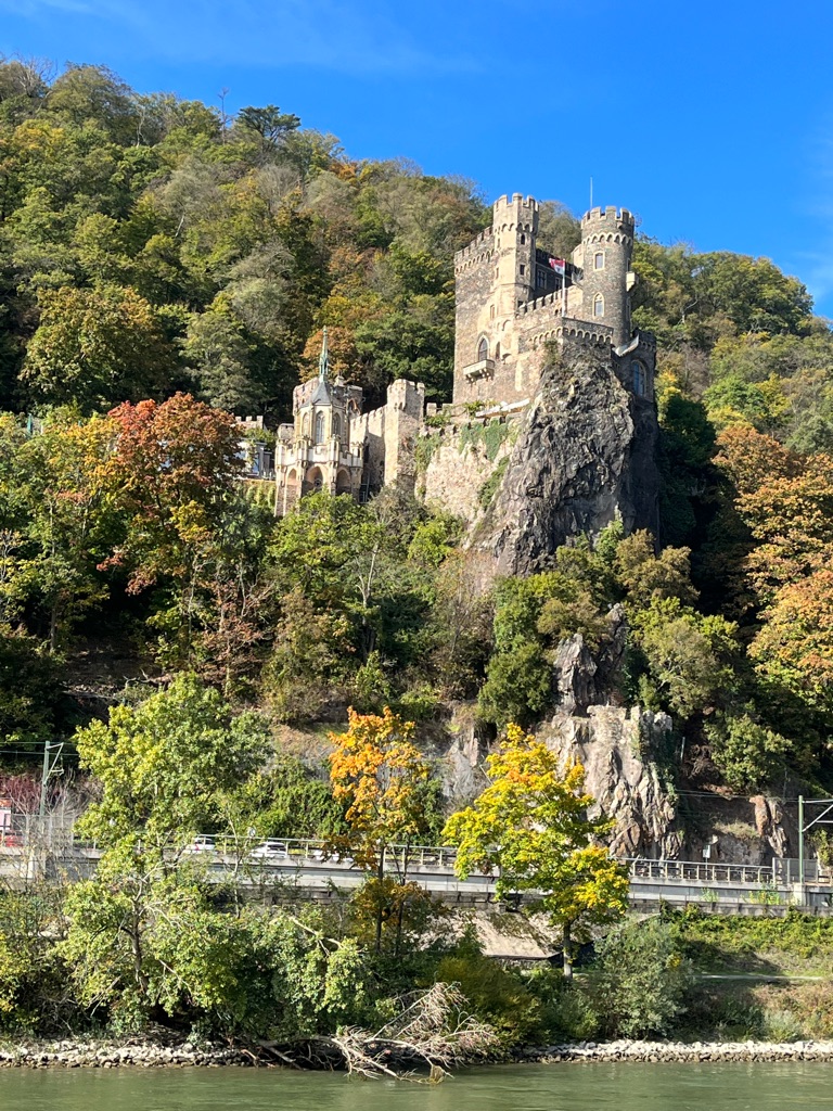 Rheinstein Castle, a little younger than the others we’ve seen, was constructed in about 1316/1317. It was important for its strategic location. But by 1344, the castle was in decline. By the time of the Palatine War of Succession, the castle was very dilapidated. During the romantic period in the 19th century, Prince Frederick of Prussia (1794–1863) bought the castle and it was rebuilt.