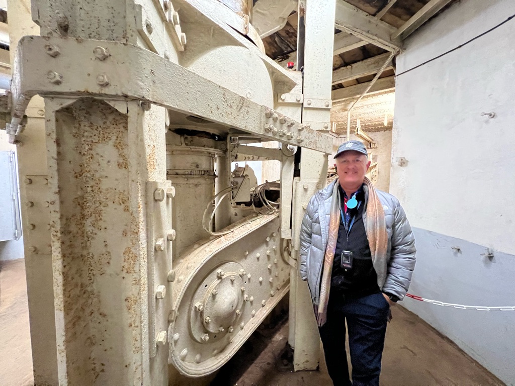 We climbed 100 steps to the gun turret which exists in a low dome on the top of the hill. When the turret is in ‘peacea’ position the dune is closed. But when the turret is in use, it raises up about 3 feet to allow the guns to fire.