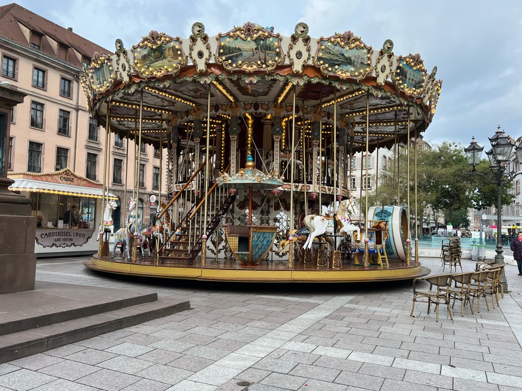 Just down from the Cathedral square on our way \240to the \240La Petite France area, we happened upon this double-decker merry-go- round! Built in the late 1800s it was designed for adult entertainment! Children were not welcome.
