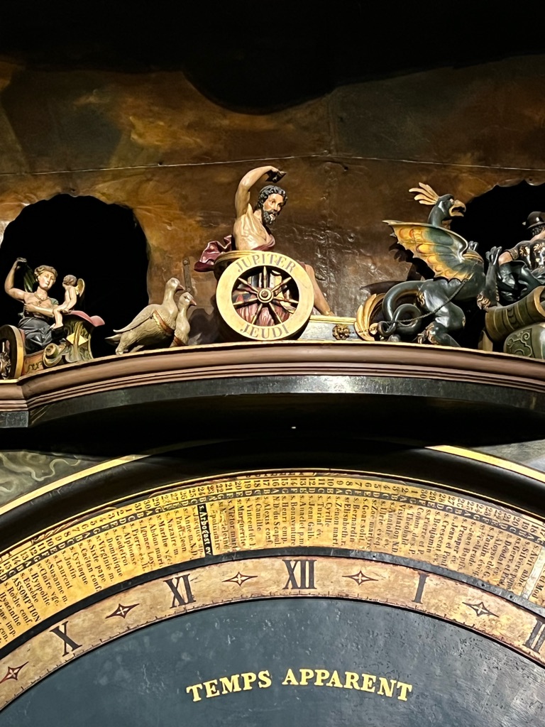 And the days of the week, displaying the Roman mythical figures respnsiblr for their names (in French) circled slowly such that the figure (in the case Jupiter for Juedi [Thursday in French] was display.