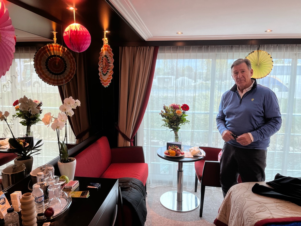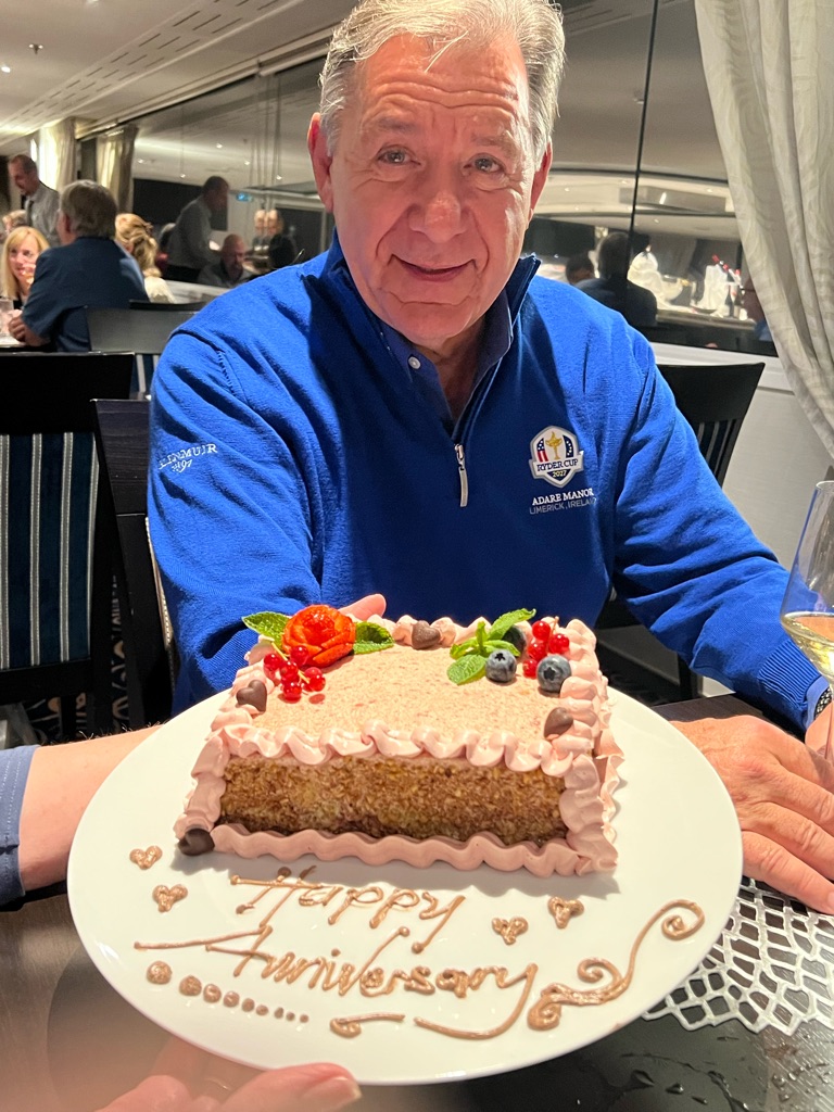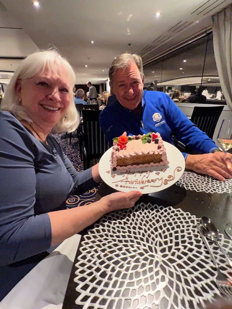 The ship’s kitchen staff has been working with Linda to accommodate her dietary restrictions … and they went all out with an anniversary cake that was not only lactose and gluten free … but delicious!!