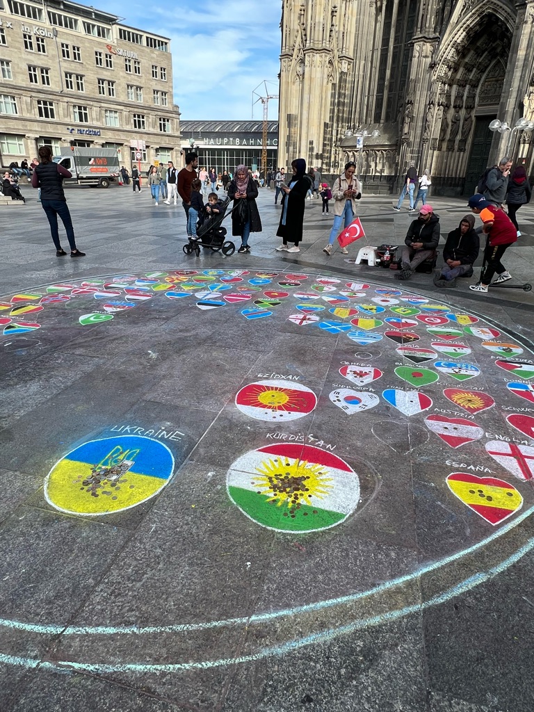 Outside the cathedral we saw several street artists who drew the flags of different countries in a circle on the ground. People would toss coins on the flag of their home country. However, \240in these times, Ukraine was getting the most coins. I’m sure the street artists took home the coins at the end of the day. It’s a good gig!