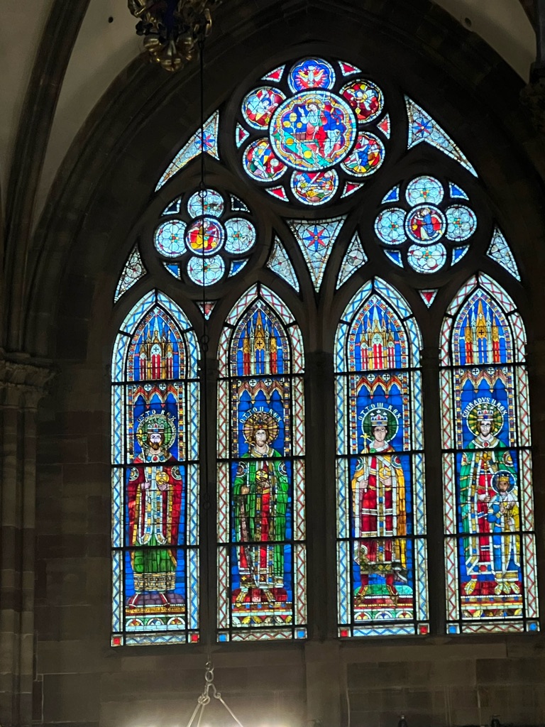 At the start of WWII, the beautiful stained glass windows were removed from the cathedral and stored far away. But towards the end of WWII, the Germans found them and they were taken to be started in the salt mines along with many other precious works of art.