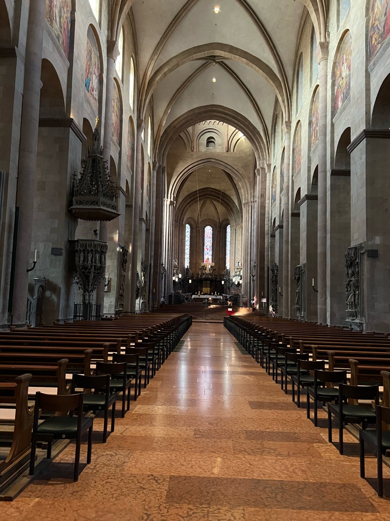 Next we toured the famous cathedral. The cathedral was consecrated in 1036, and although heavily damaged during WWII, it has been restored to its former glory … except for the stained glass windows.