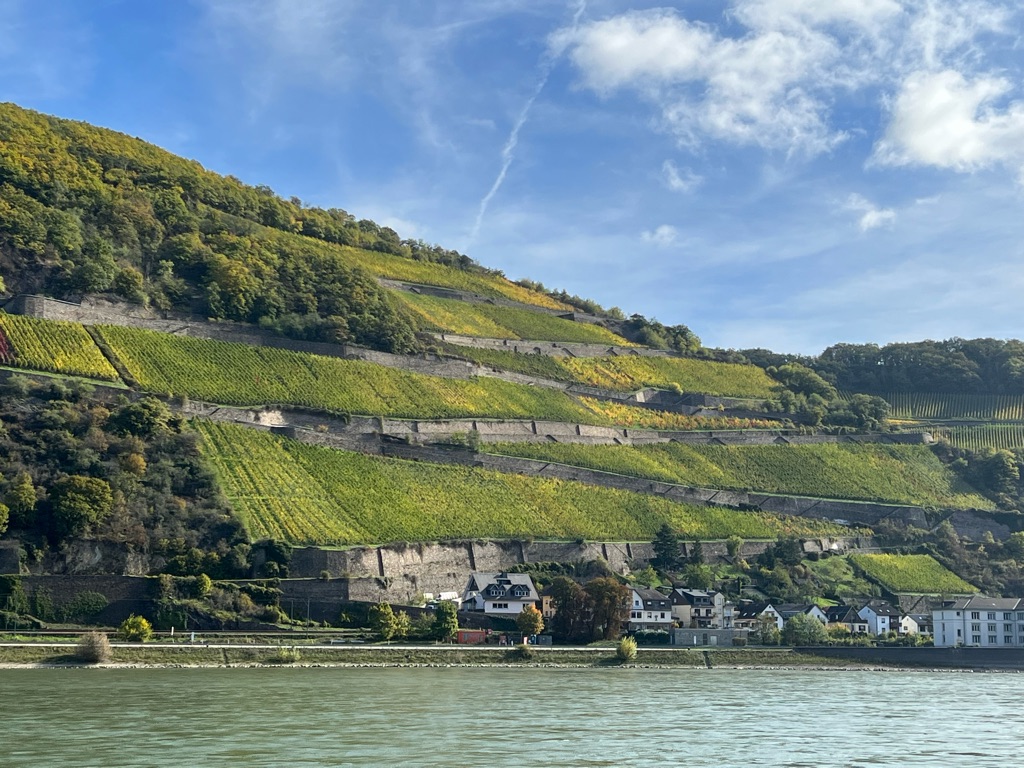 Walls protect the terraces that launch the vineyards down to the Rhine!