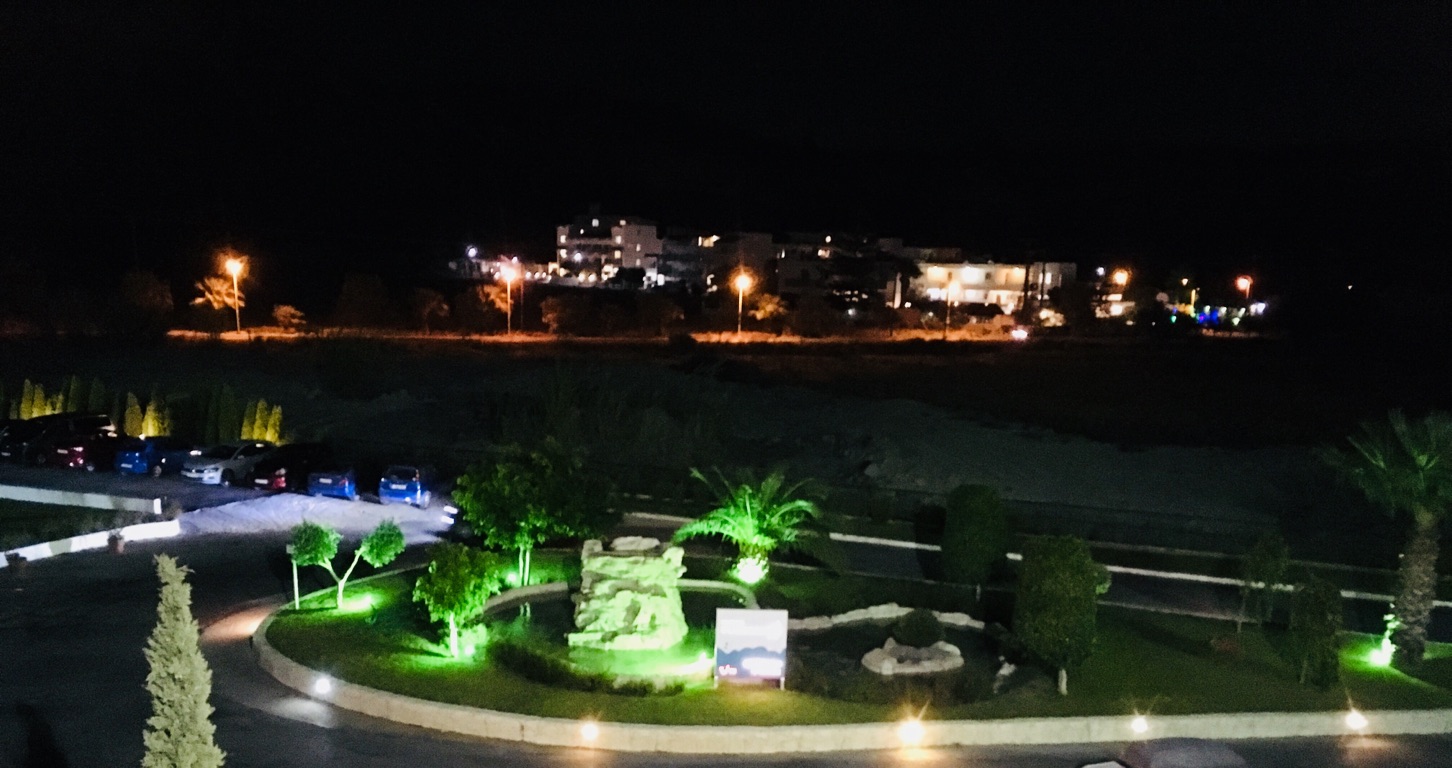 Tässä juuri nyt otettu kuva parvekkeelta ja tuon rakennuksen takana pilkistää meidän vesipuiston liukumäet. Tänään on laskettu taas mäkiä ja uikkarin persus on ihan kulunut🤪